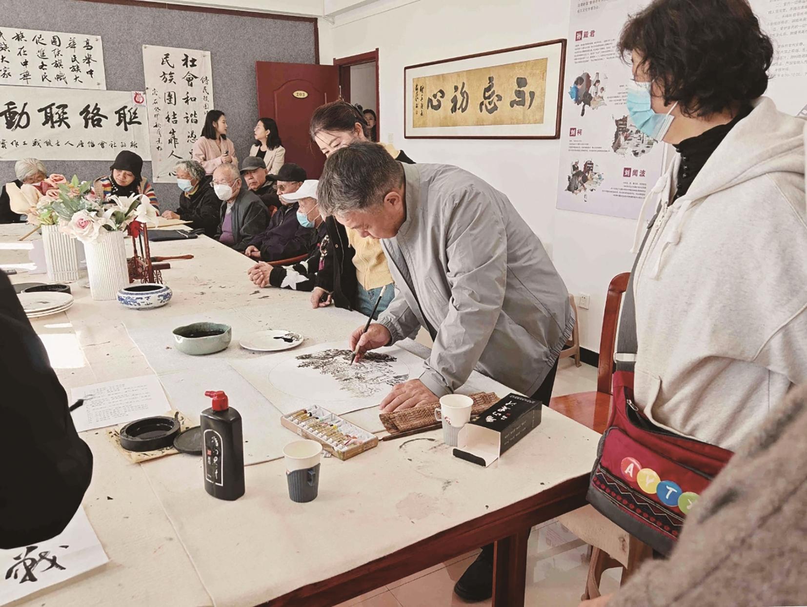 本报讯 近日,包头美术馆组织馆内文化志愿者在昆区市府东路街道阿尔丁1#社区开展“重阳献艺 墨舞夕阳·各族群众心连心”书画联谊活动。