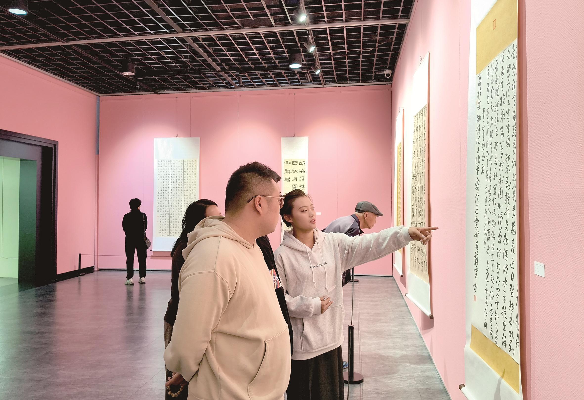 资深书法家赵永红的作品在全国第十三届书法展等多个展览中展出,他一边向观众介绍自己的作品,一边告诉记者:“此次展出的书法作品融入了我多年的生活体验和创作心得,希望通过我们的作品,能够让大家感受到书法的魅力,爱上书法,同时看到包头积极向上的精神风貌。”