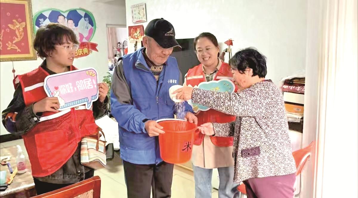 活动开始,热心居民纷纷以善意的微笑迎接他们的到来,一勺勺饱含爱心的大米被郑重地装入募集米桶,爱心与温情在这一过程中缓缓流淌。“小巷管家”王阿姨满心欢喜地介绍:“在敲门的过程中,邻居都特别愉快地捐米给我们,那种感觉真的美妙极了。”募米归来,“小巷管家”们将募集到的米汇聚在一起,社区工作人员则用这些满载爱心的大米精心制作成美味的爱心粥,并热情地邀请社区独居、困难老人来到社区一同交流品尝。