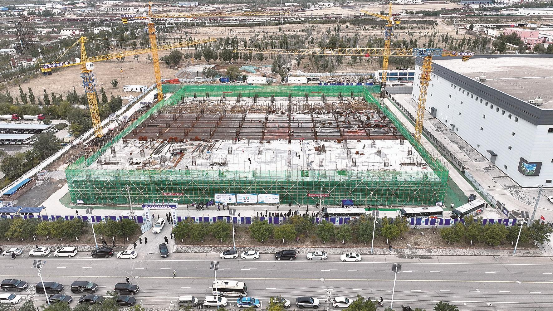 项目拔节生长的背后,是对新质生产力的加快培育。以绿色低碳发展为主线,以科技创新为核心要素,作为国内首个校企科技推广创新模式的地聚物示范性项目,内蒙古波普和丰环保有限公司建设东河区工业固废资源化年产120万吨地聚物胶凝材料及脱硫石膏综合利用项目含“绿”量、含“新”量十足。高耸的塔吊、轰鸣的机器、忙碌的工人,项目今年9月开工,其中5万吨地聚物胶凝材料中试基地正在安装设备,预计10月底投产。以绿色数智化、无废化生产,项目建设将助力东河区绿色低碳发展。