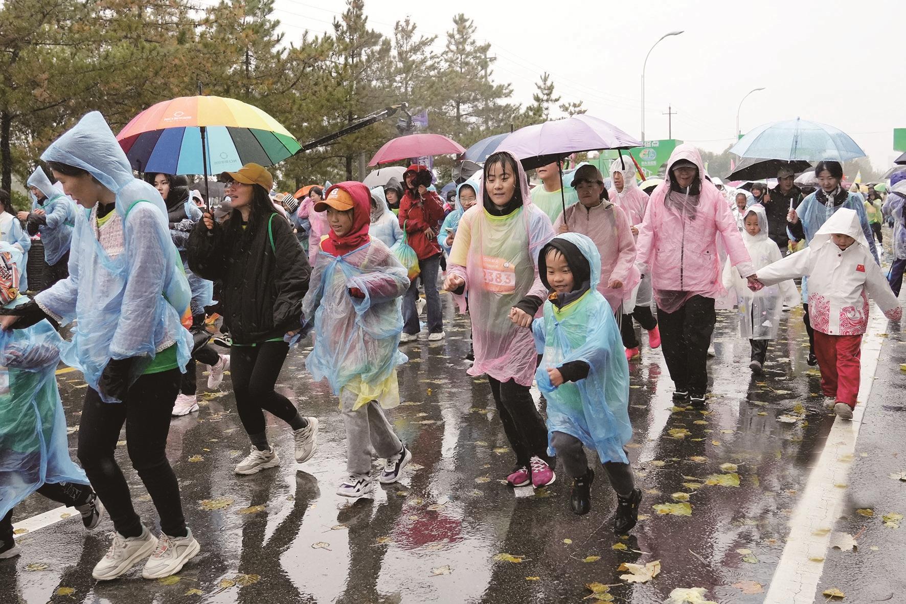 众多跑步爱好者冒雨参加此次马拉松赛。记者 常静 摄