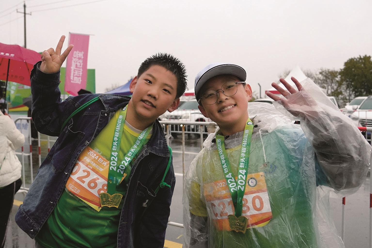 两名学生为自己能够完赛感到骄傲。记者 祝家乐 摄