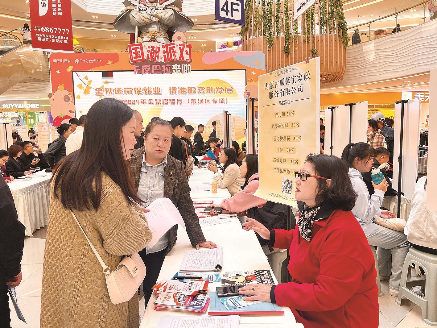 出门逛个街,就能邂逅一场干货满满的招聘活动。10月26日上午,由包头市就业服务中心、东河区人社局主办的2024年金秋招聘会在东河区摩尔城举行。现场54家优质企业参会,177个岗位集中亮相,共吸引3000多人到场选岗,现场达成就业意向190余人,有效满足了企业与求职者的需求。