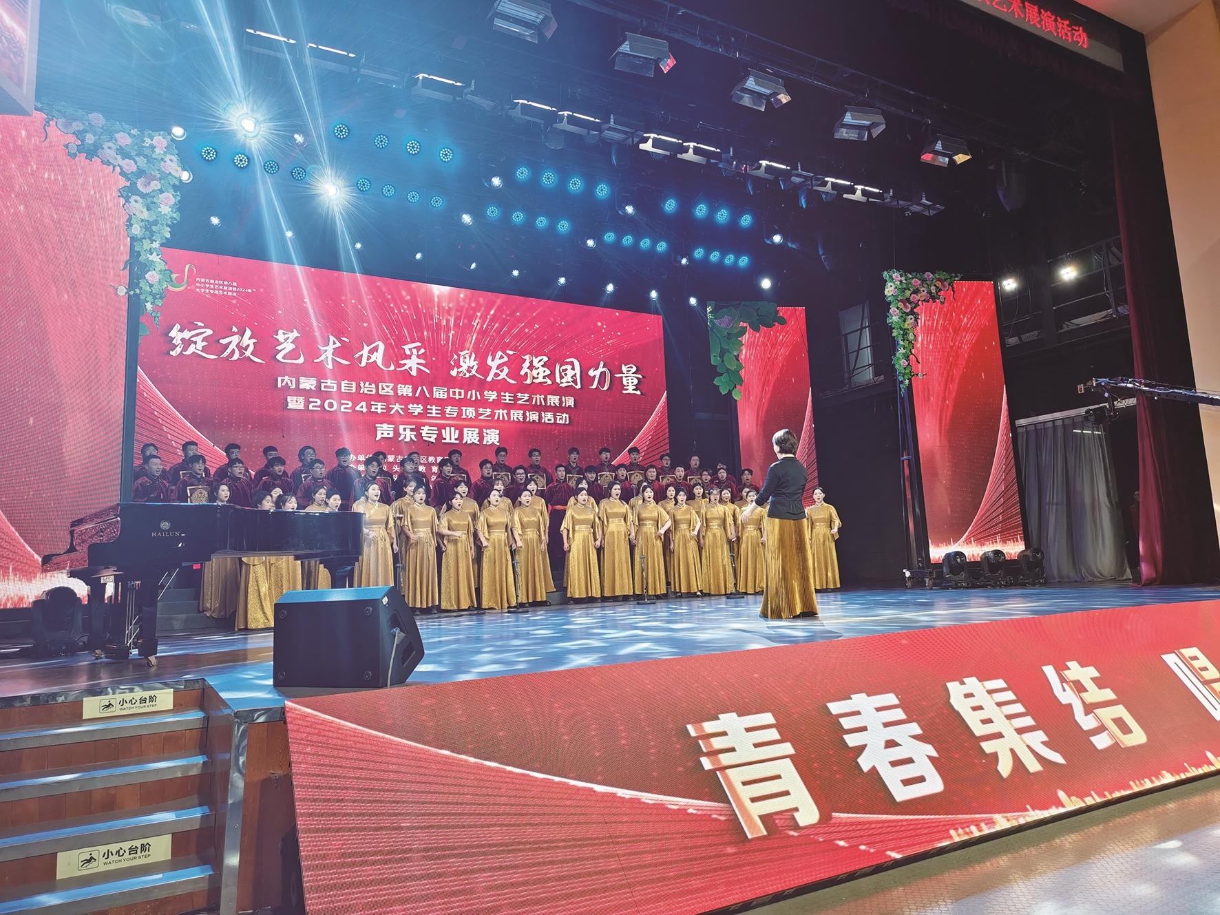本报讯 10月29日,内蒙古自治区第八届中小学生艺术展演暨2024年大学生专项艺术展演在市少年宫开幕。此次展演活动为期3天,活动期间有开幕式、合唱、声乐、器乐、舞蹈等展演。