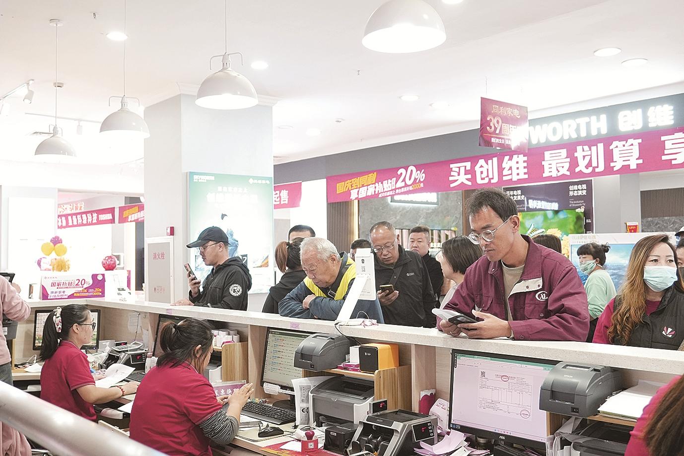 “门店从早上九点开门到晚上八九点,消费者络绎不绝。”同利家电文化路店采销总监张树新介绍,这次国家补贴政策对家电消费市场的刺激非常明显。