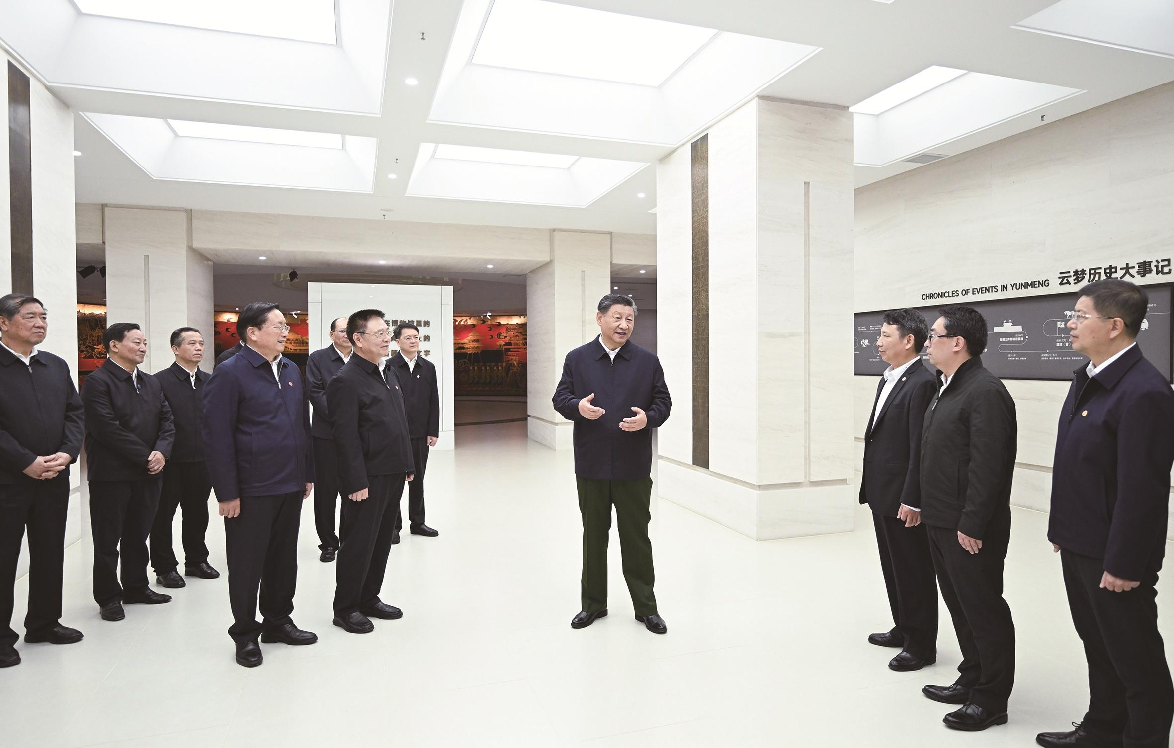 4日下午,习近平在孝感市云梦县博物馆考察。新华社记者 燕雁 摄