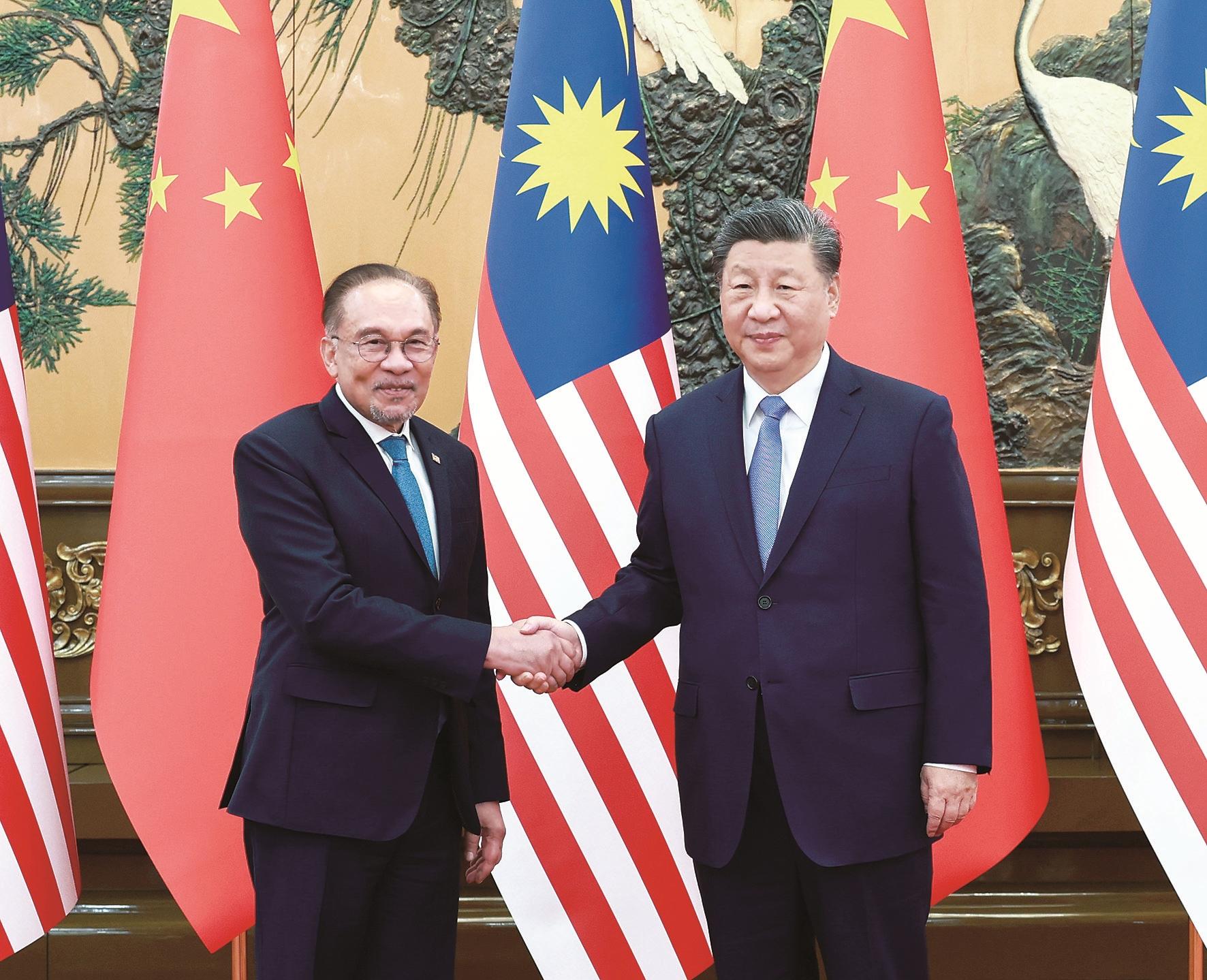 习近平强调,双方要发展高水平战略伙伴关系,继续保持高层密切交往,加强治国理政经验交流,增进政治互信,坚定支持彼此核心利益和重大关切。中方支持马方坚持战略自主,选择符合自身国情的发展道路。双方要加强发展战略对接,深化全方位互利合作,持续推进高质量共建“一带一路”,共同实施好“两国双园”等旗舰项目,打造数字经济、人工智能、新能源等合作新增长点,探讨建立减贫交流合作机制。下转02