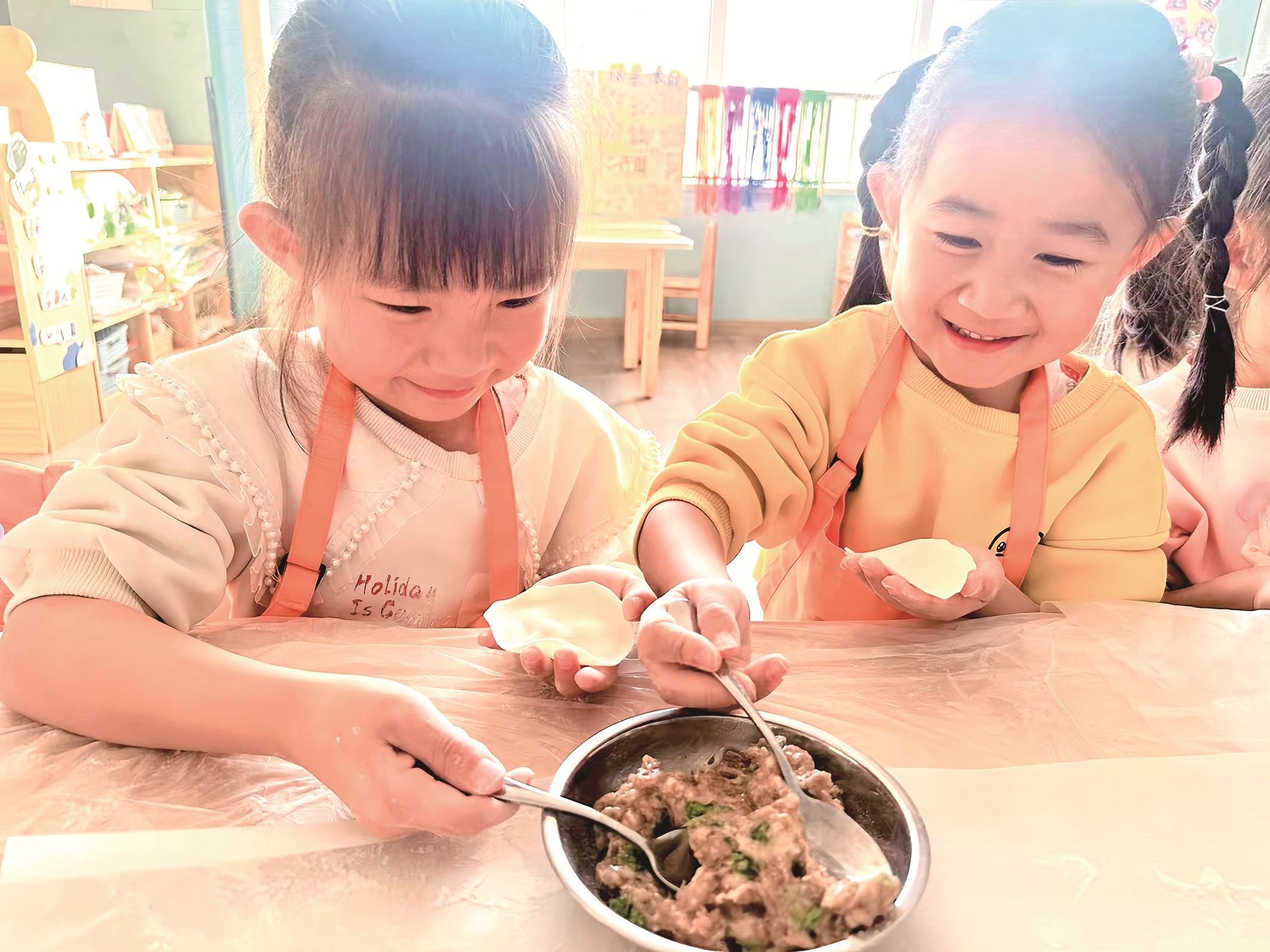 本报讯 11月7日是二十四节气中的“立冬”,立冬吃饺子,寓意“交子之时”,即新旧交替、辞旧迎新之意。包钢幼教处所属幼儿园的小朋友体验了一次“包饺子过冬”的传统文化活动。小朋友们在老师的指导下自己拌馅、和面、擀皮,一边儿动手,一边儿听老师讲述立冬的故事,体验传统民俗,感受传统文化。