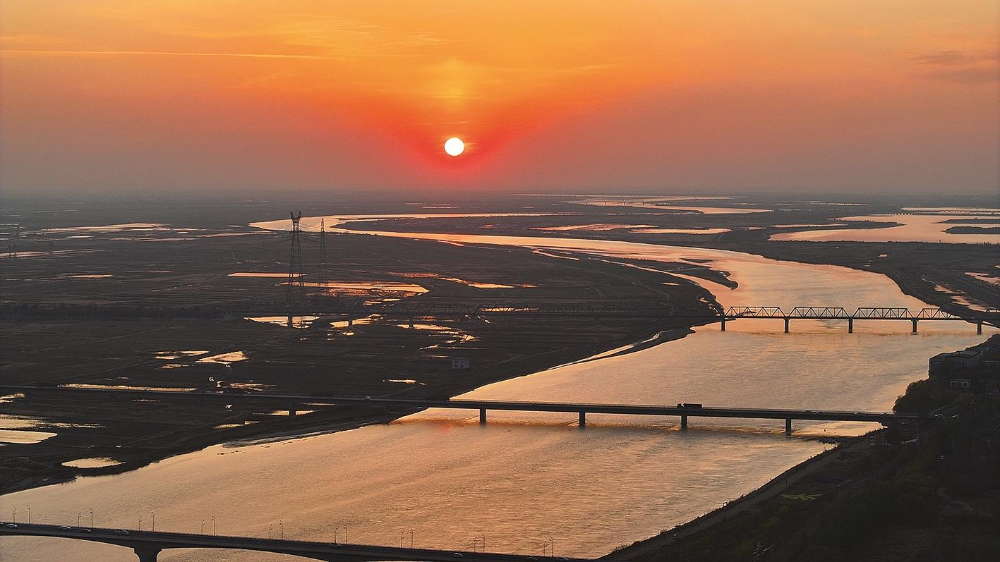 黄河之水,奔腾不息,在夕阳的映照下,泛起粼粼波光,如金色的丝带舞动在大地上。包头段的黄河,承载着岁月的沧桑与历史的厚重,此刻,仿佛在诉说着古老的故事。蜿蜒的黄河,夕阳渐渐西沉,天边被染成绚丽的橙红色。河面倒映着天空的色彩,水天相接,融为一体。记者 祝家乐 摄