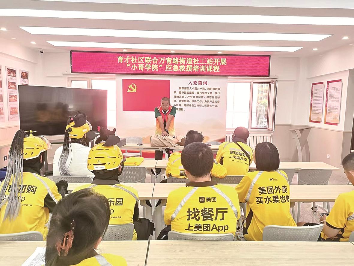 青福镇保利社区辖区共有居民超1万户,社区积极对接辖区中小学校、托幼机构,建立未成年人保护“社—校—家”联动机制。青山路街道北新社区联合多家企业,推出“青创集市+专场招聘+就业服务+直播带货+文娱活动”模式,帮助居民实现“家门口”就业。万青路街道育才社区聚焦新业态新就业群体的实际需求,打造“骑手关心关爱之家”,创新设置女性骑手暖心包、骑手补给站等多项增值服务,切实以“暖新”服务吸引“两新”融入。