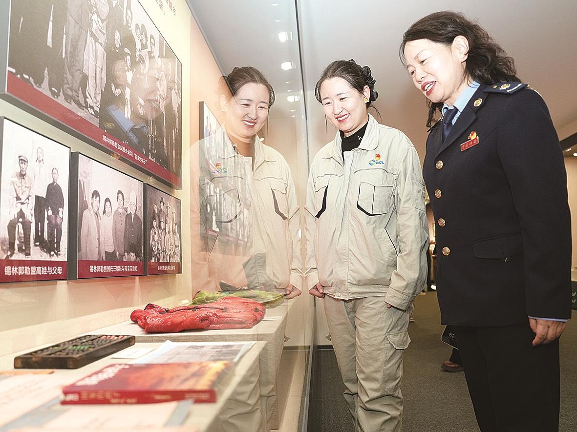 图为税务工作人员与辖区企业代表参观“三千孤儿入内蒙”主题展馆。