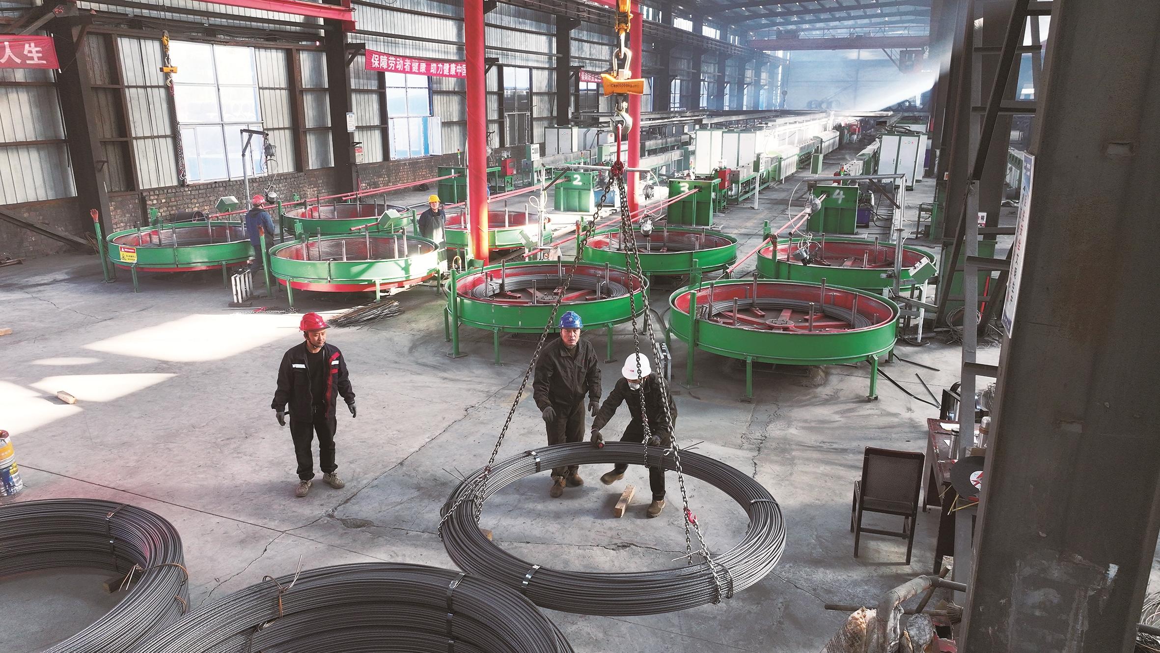 内蒙古中鑫钢棒金属科技有限公司生产车间,企业正在赶制1.2万吨PC钢棒。