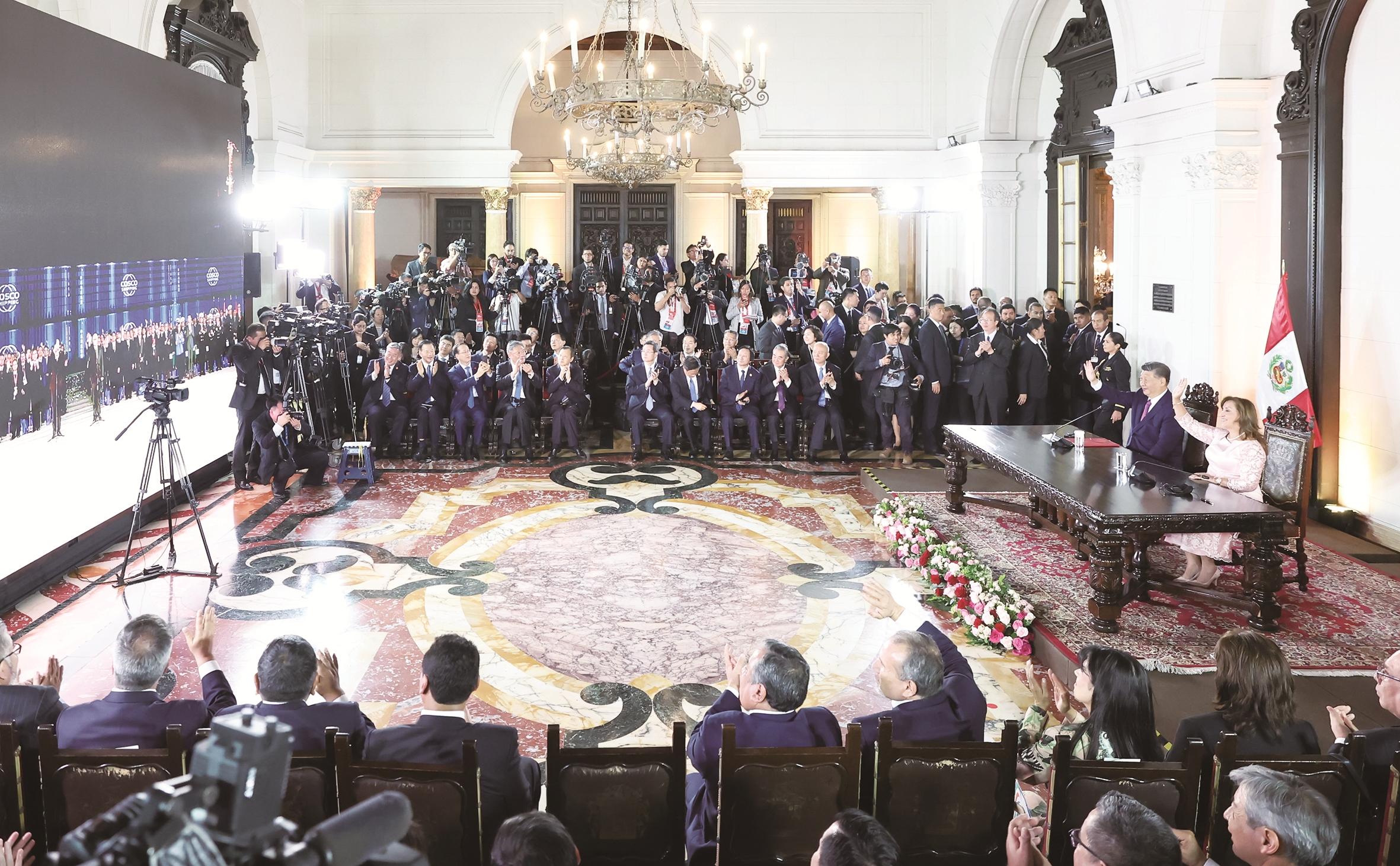 习近平强调,我们要共同努力,一道把钱凯港建设好、管理好、运营好,不断提升运能运力、提高综合服务水平。积极探索以通道带物流、物流带经贸、经贸带产业,坚持共商共建共享,赋能包括中秘两国在内的太平洋沿岸经济体共同发展,使之真正成为秘鲁乃至广大拉美和加勒比国家的繁荣幸福之路,在更广阔的空间实现互利共赢,为各国人民带来更多触手可及的收获感和满足感。