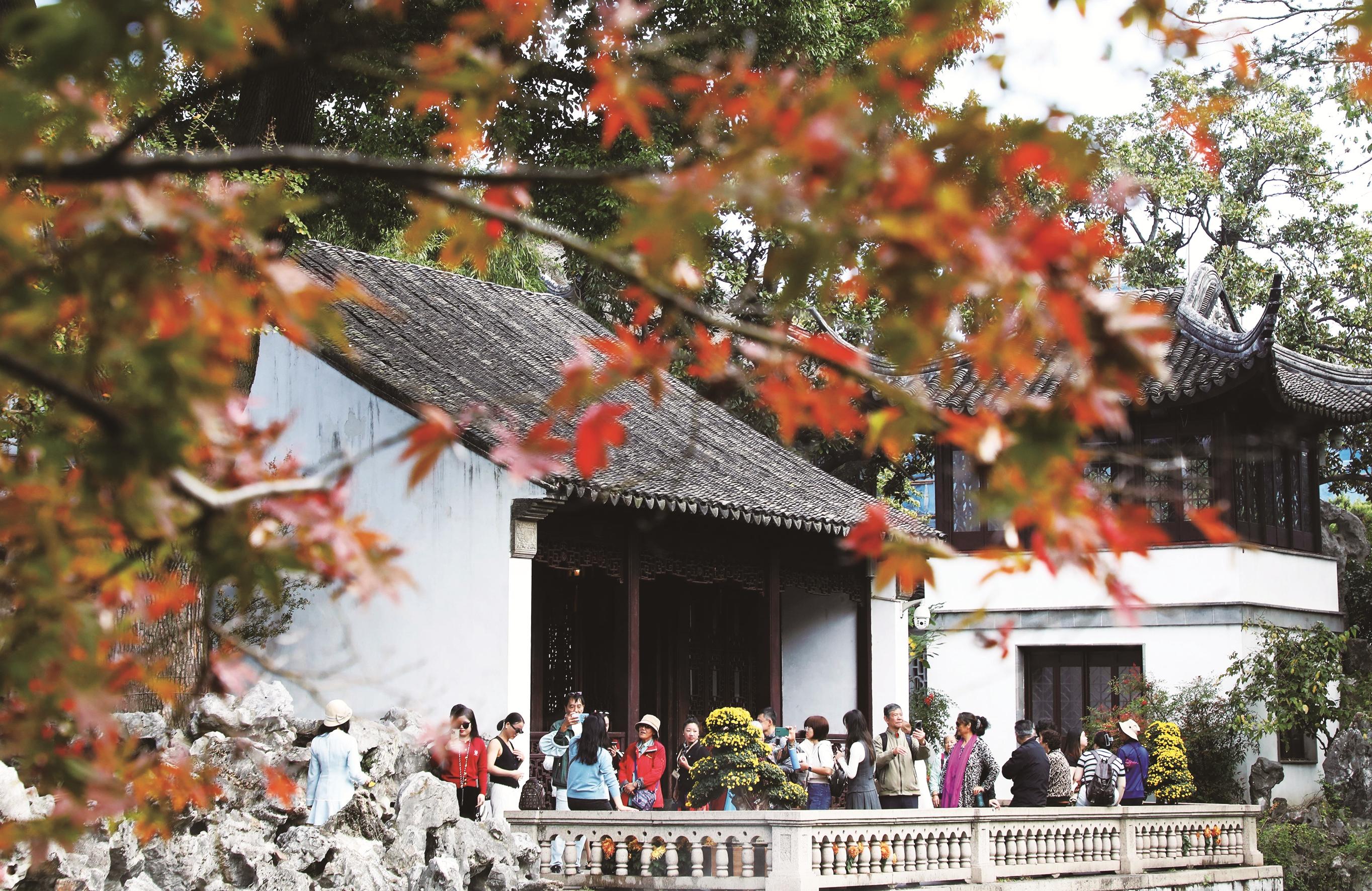 11月14日,游客在江苏苏州狮子林赏景游玩。