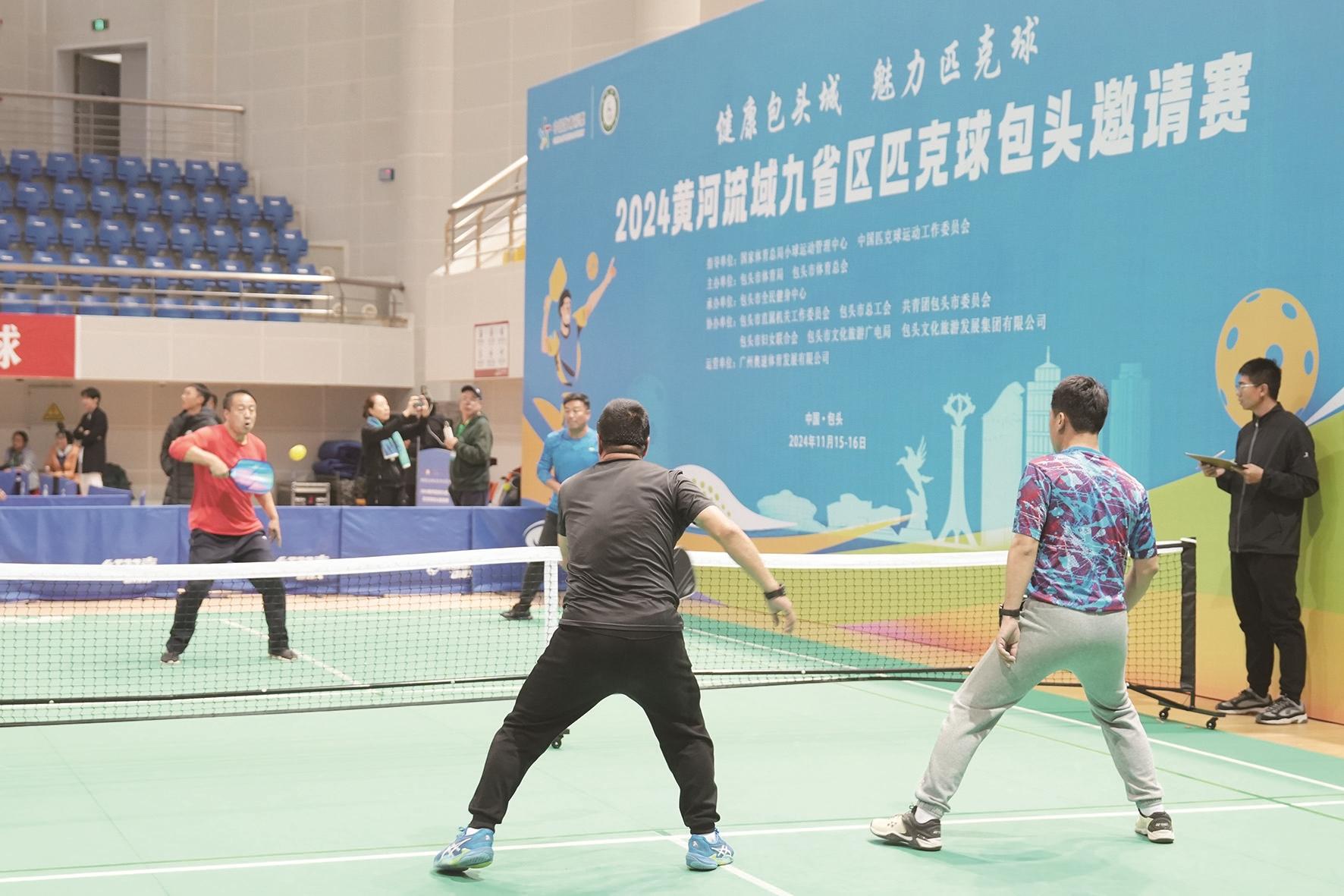 11月15日上午,2024黄河流域九省区匹克球包头邀请赛在包头市体育中心乒羽馆挥拍开赛。