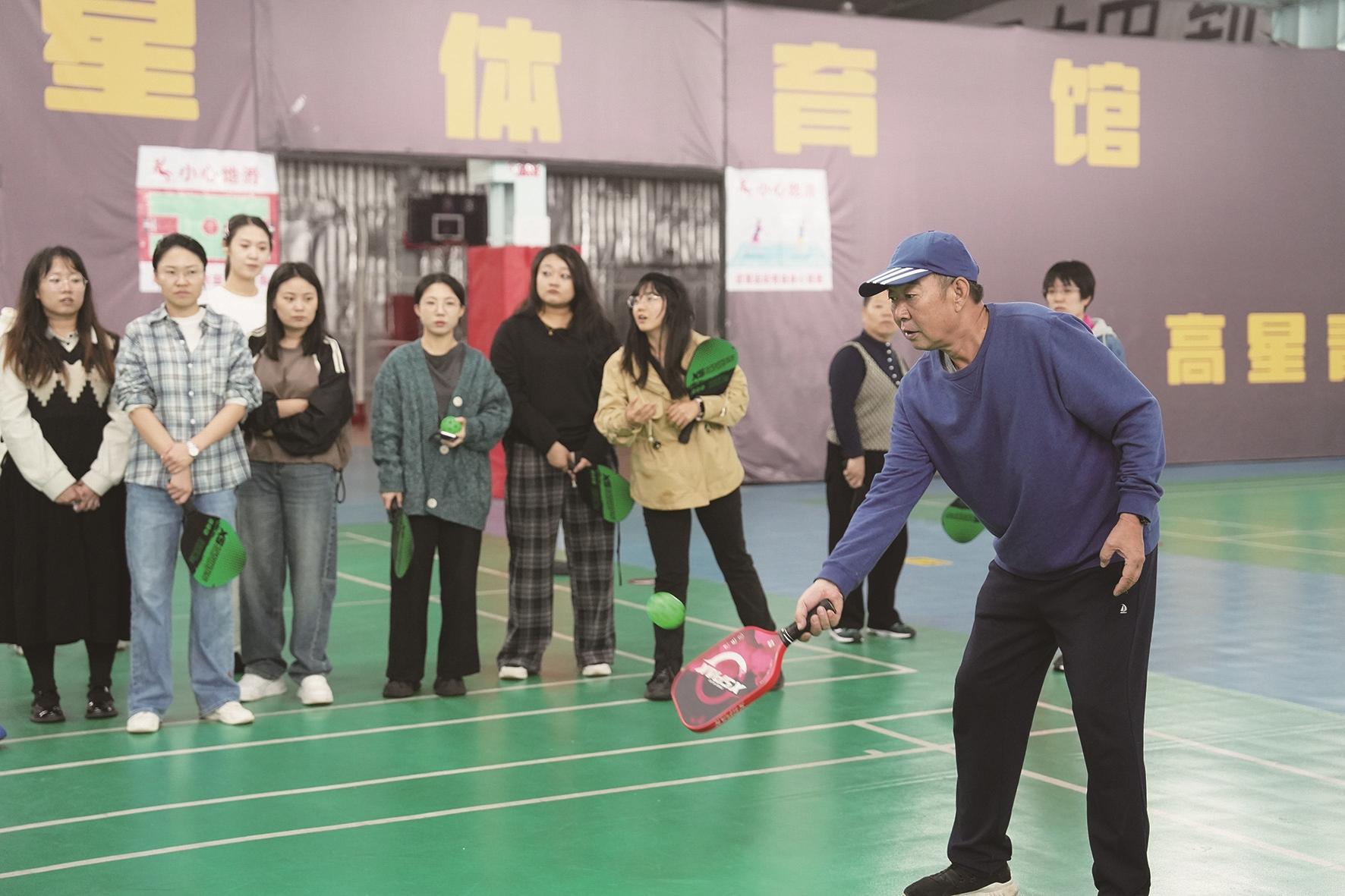 11月14日上午,在口岸小区新改造完成的匹克球场内,击球声不绝于耳,包头市匹克球推广人、教练王松生正和小区内的匹克球爱好者交流球艺。王松生一个反手切球,随即上网扣杀。“好球!”观众一片叫好。
