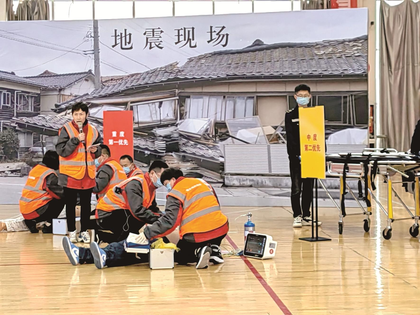 本报讯 11月15日,由市卫生健康委主办的地震灾害应急演练在包头职业技术学院体育馆举行。