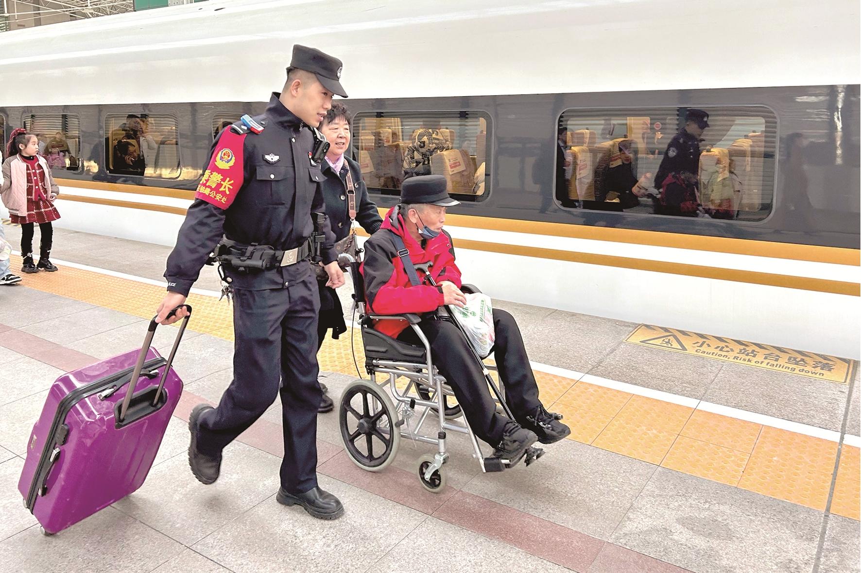 “谢谢你小伙子!”在包头开往北京北的G2492次列车上,旅客张先生对乘警田磊表示感谢。当日,乘警田磊在巡视车厢时,发现两名残疾旅客愁容满面、眉头紧锁,便上前询问是否需要帮助。原来他们要在北京中转换乘,却在购票上犯了难。“我们不会用手机买票,腿脚还不方便,正在为买票的事发愁。”张先生说道。眼看列车就要到达北京北站,田磊便主动通过APP帮助他们选定了换乘车次,购买了车票,留足中转换乘时间,又帮他们在纸上画出简单的路线图,以便顺利换乘。