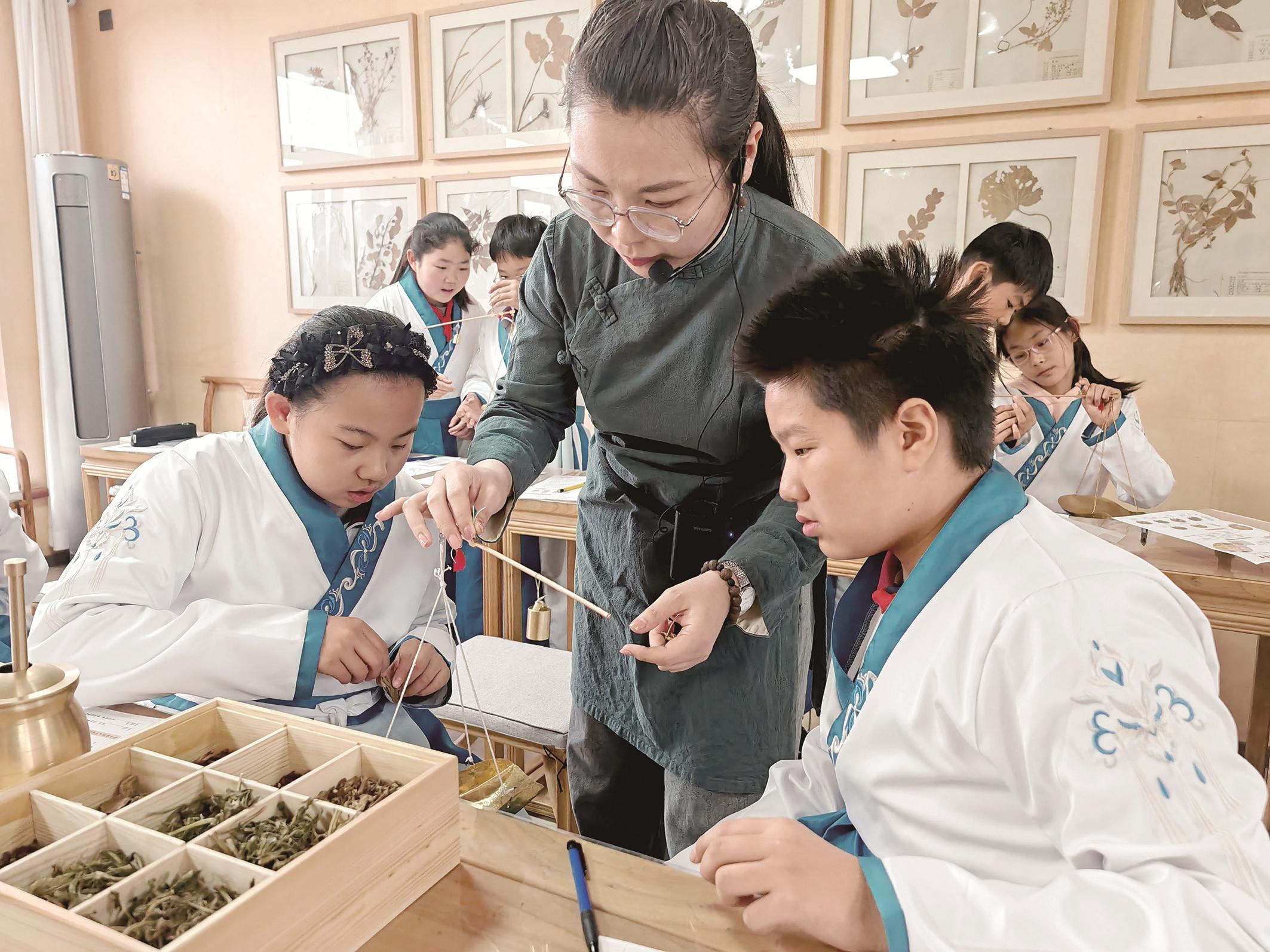 中医文化作为中华民族的瑰宝,承载着中华民族的智慧和传统文化。今年以来,昆区第一实验小学以“心·悦读”儿童成长坊为主阵地,开展“中医药文化进课堂”阅读+实践项目化学习,联合非遗传承基地,开设有趣有料的非遗研学课程,传承中医药非遗文化。