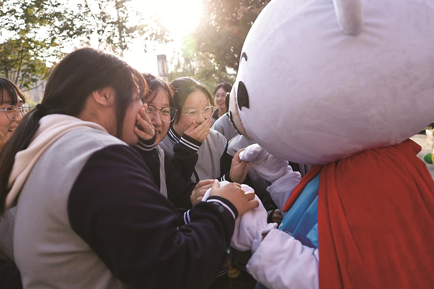 10月23日,山东省章丘四中的学生参加心理健康户外活动。
