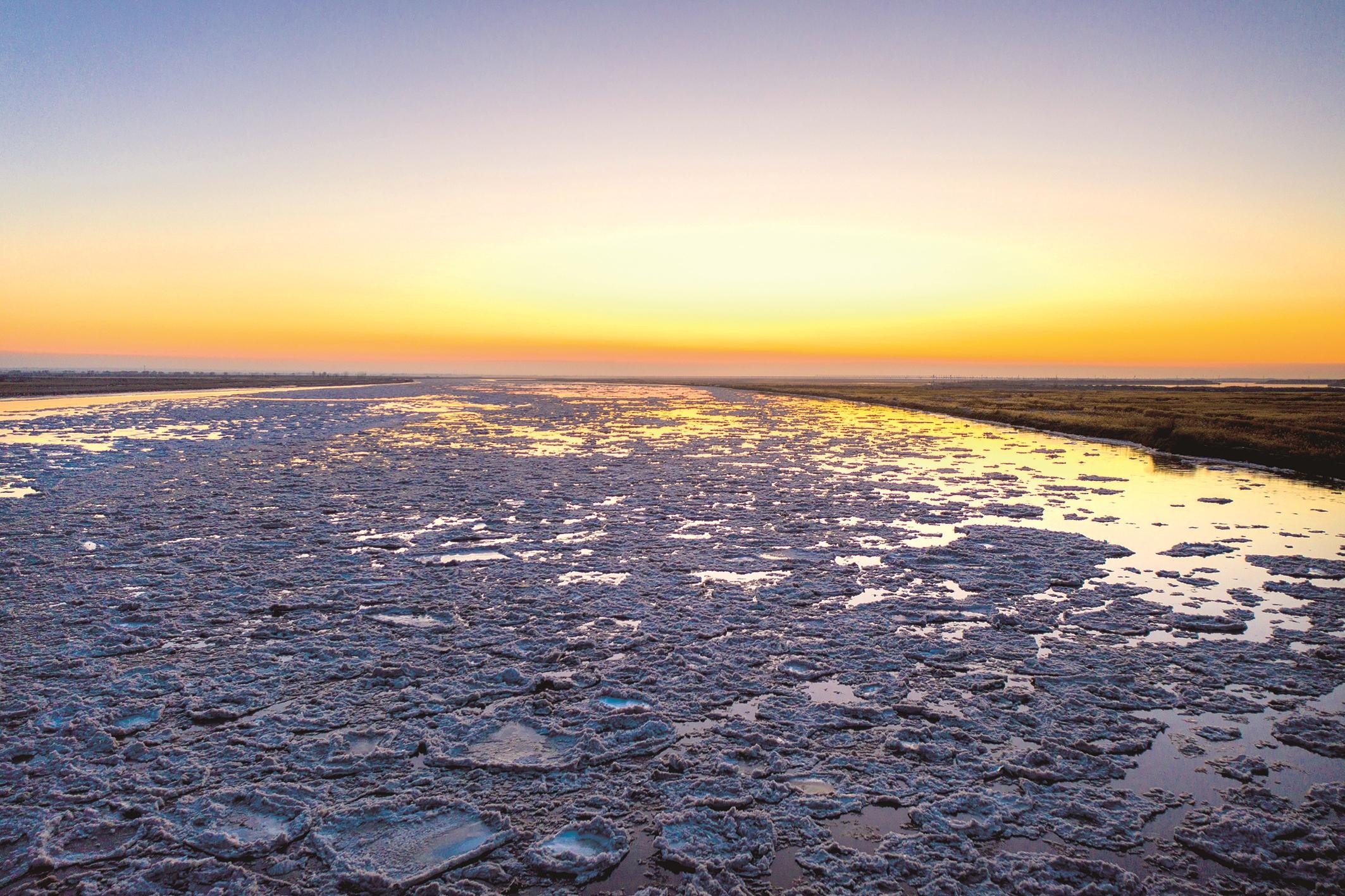 冬天,流凌犹如千军万马气势磅礴,随着气温不断下降,千里冰封的黄河,犹如一条银色的巨龙,蜿蜒伸展。此时的黄河,展现出一种冷峻而又壮美的气质,让人不禁为之折服。