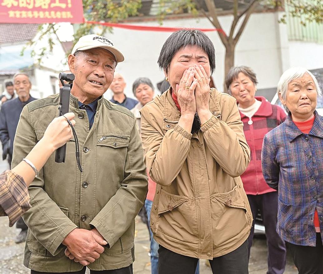 ?11月16日,杭巧云(中)看到弟弟后掩面哭泣。 新华社记者贺书琛摄