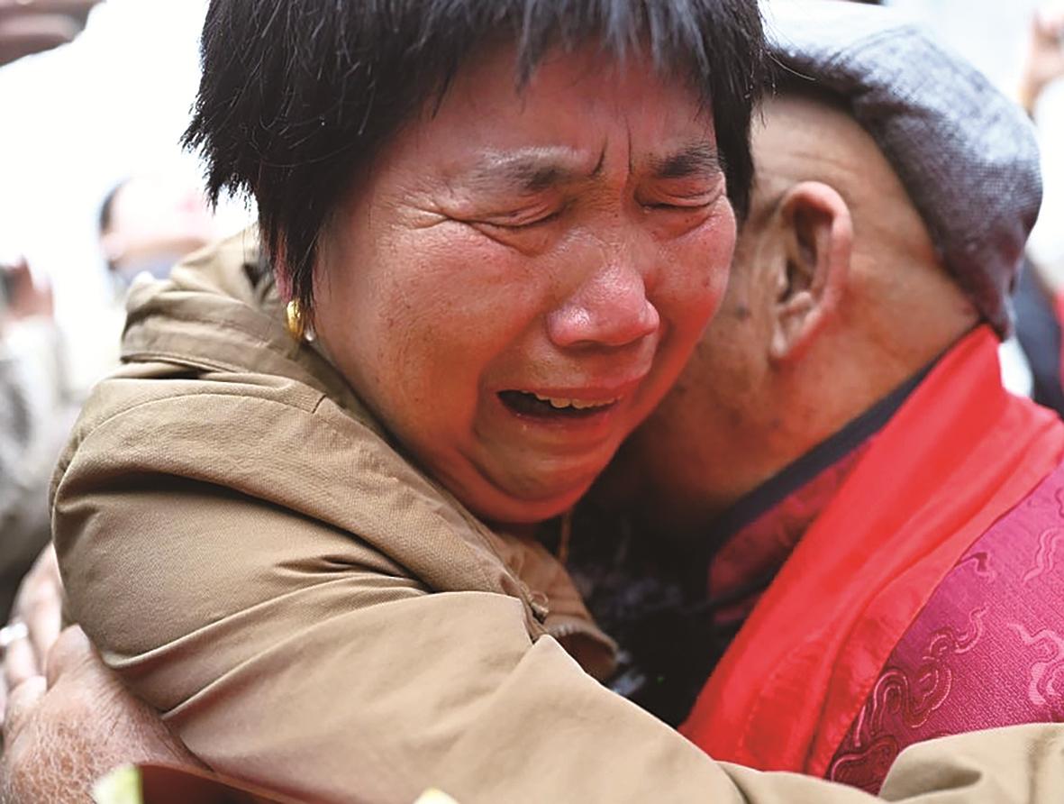 ▲11月16日,杭巧云抱住弟弟痛哭。新华社记者贺书琛摄