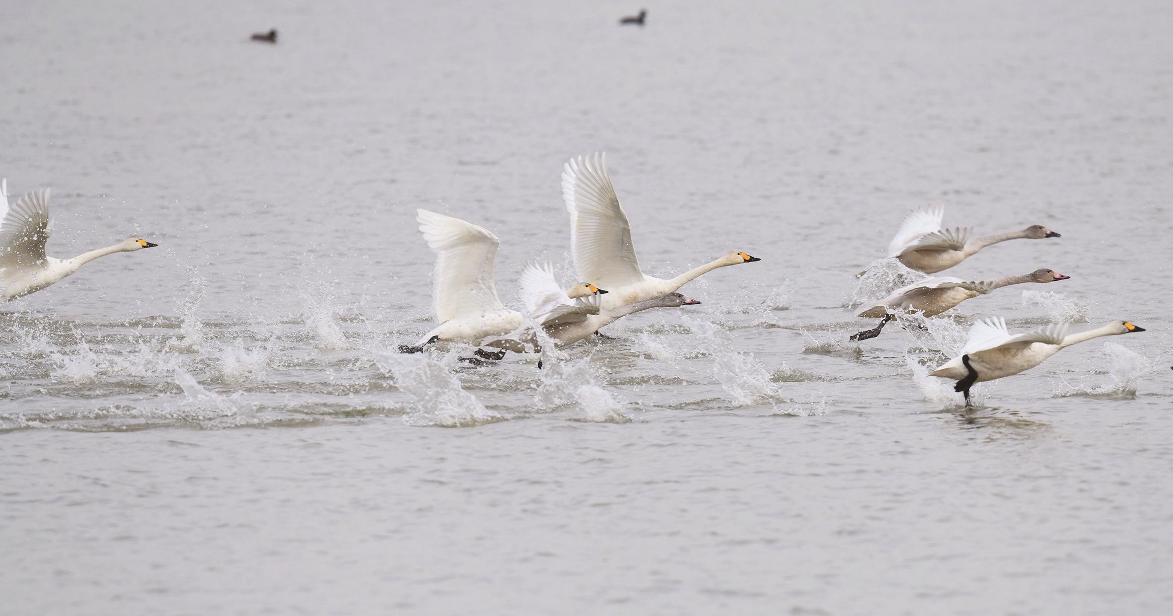 近段时间,天鹅在黄河土右旗明沙淖段沿黄湿地水域嬉戏。近年来,土右旗明沙淖乡西杨家圪堵村大力实施黄河流域生态保护,区域生态环境质量不断提升,沿黄湿地“河畅、水清、岸绿、景美”,为白天鹅及其他鸟类创造了适宜的栖息环境。