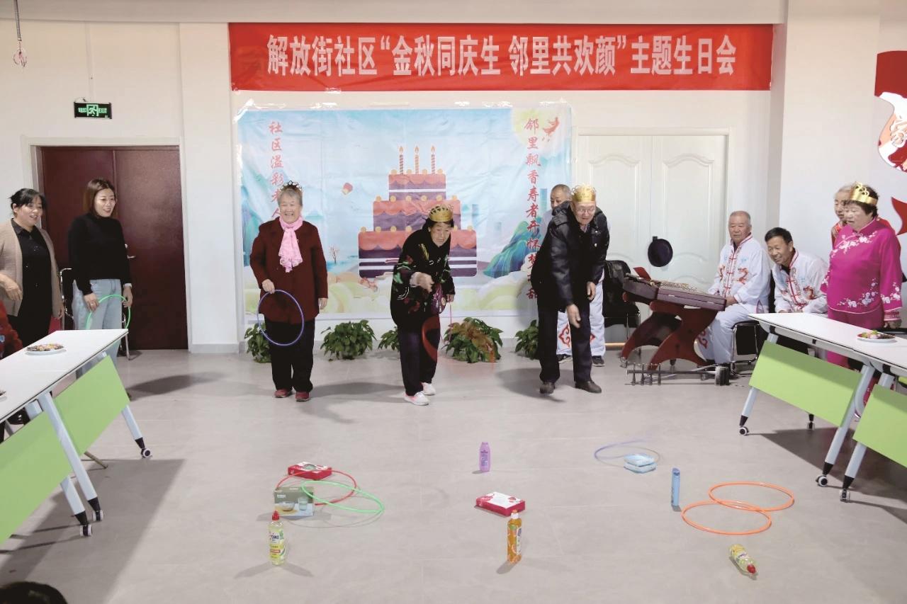 一场简单的生日会、一支祝福的生日蜡烛、一句平常的关心问候,温暖着老人们的心,带给他们简单贴心的快乐。解放街社区居民任国增老人作为今天的寿星高兴地说:“感谢解放街社区每月为75周岁以上的老年人举办生日会,今天生日会的氛围非常好,现场观看了节目并参与了互动游戏,吃了长寿面、蛋糕,感谢社区所有工作人员。”