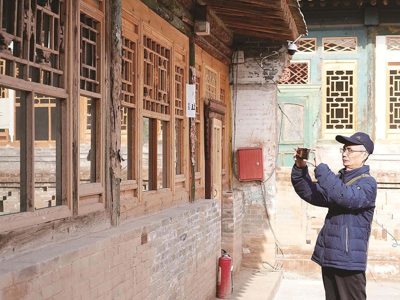 “传统民居建筑是三官庙片区的亮点,也是重要的物质文化遗产。”刘清成说。走进三官庙片区,院落布局严整,外雄内秀,由正房、厢房、倒座房、耳房、影壁、大门等元素组成独院式四合院。墙体砖石勒脚,土坯筑墙,青砖山尖,院门有砖券的圆门洞和方门洞,门楣上刻有“鸢飞鱼跃”“善为宝”“耘读第”等品行志趣和家风家训。进入门内即见影壁,砖雕华丽,装饰有牡丹、蝙蝠等图案,中下部有佛龛,构图均衡,意蕴祥和。屋顶为单面坡,铺筒瓦,檐有瓦当滴水,下雨时雨水顺屋顶向内流,寓意“肥水不外流”。正脊,鸱吻,房屋马头多有砖雕装饰,体现着民居主人对建筑审美的艺术追求。