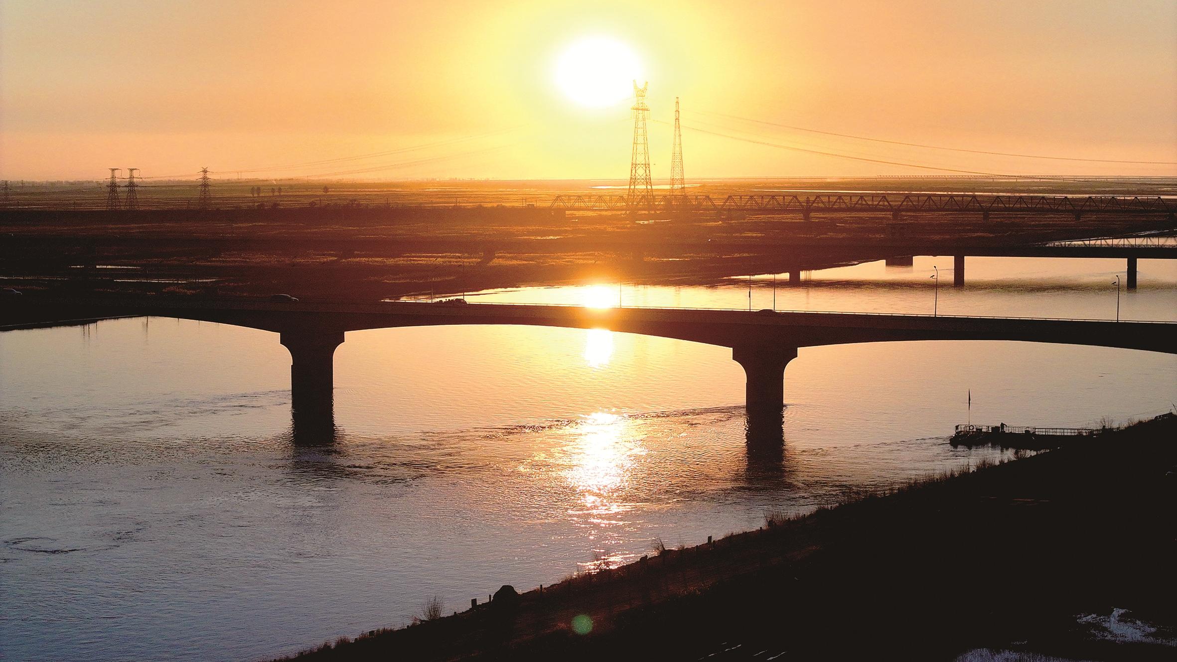 伫立河边,凭栏远眺,阳光洒在静谧的水面上,波光粼粼。天空是一片柔和的橙蓝交织,为这寂静的冬日景色增添了几分诗意。沿岸的特色打卡区,让市民游客既能打卡“出片”又能深度感受黄河文化。