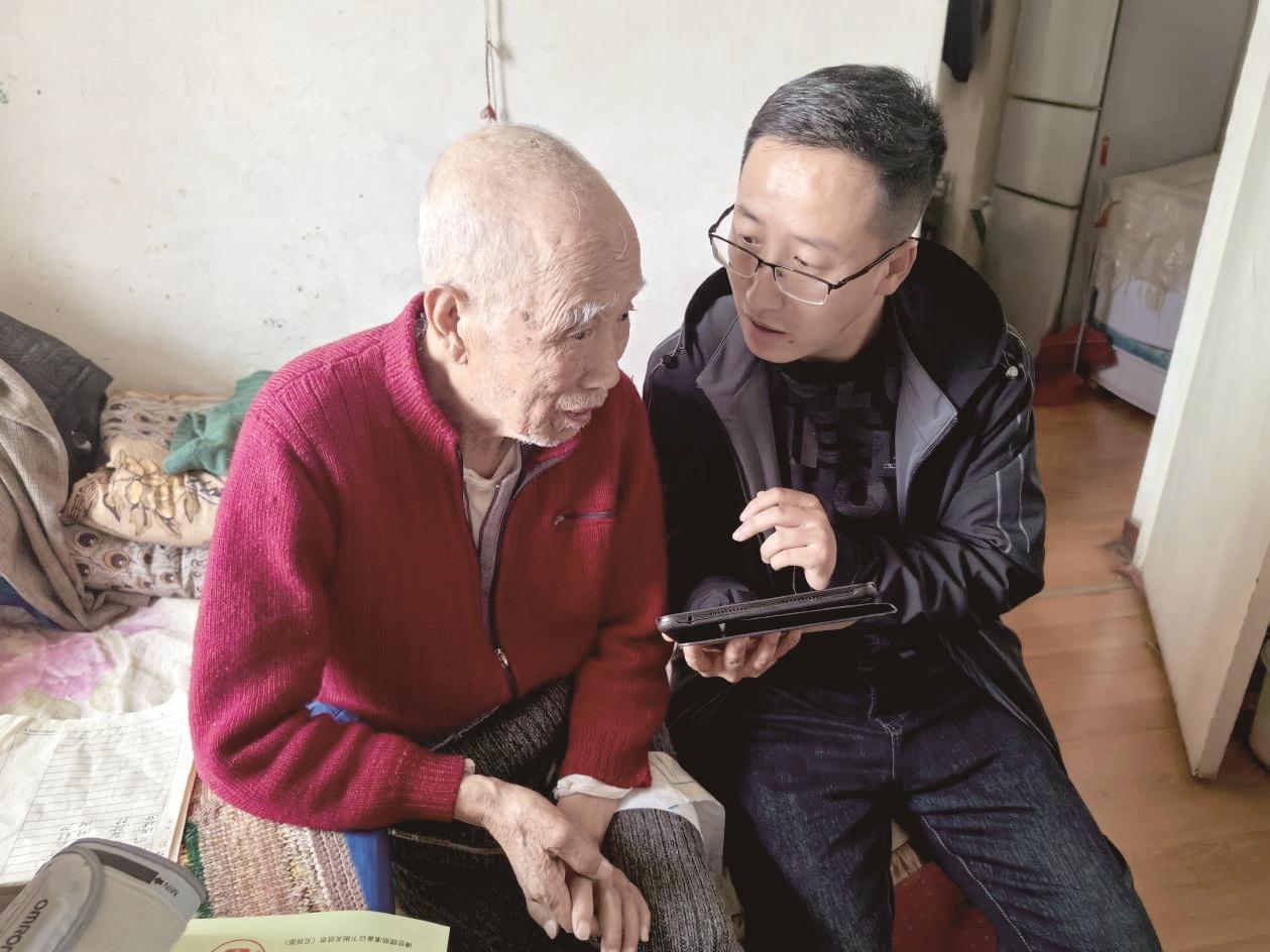 图为社区工作人员对辖区高龄老人开展入户走访。