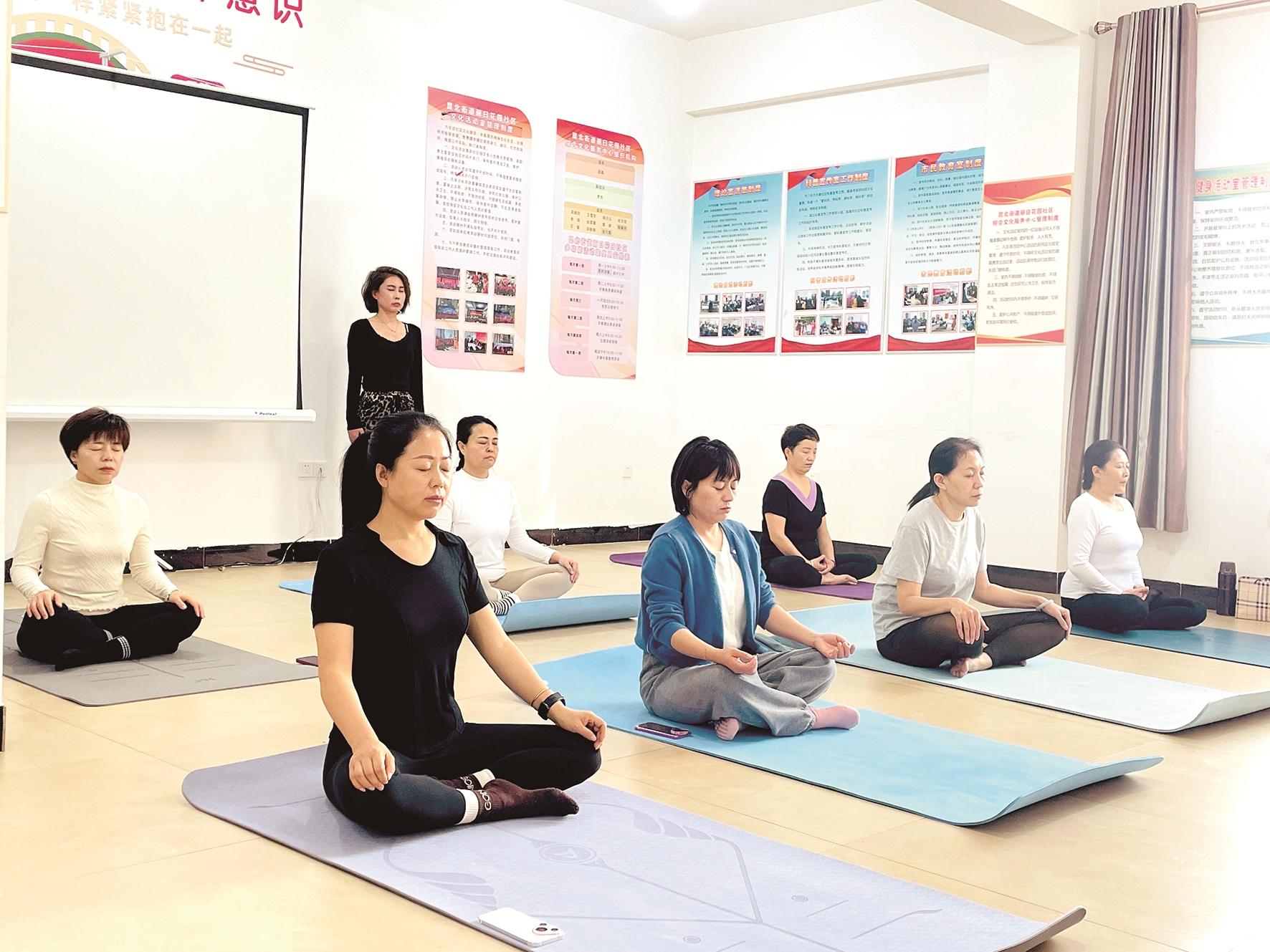 本报讯 近日,昆区昆北街道丽日花园社区开启了“互·享”陪伴式服务,让社区居民在家门口就能上瑜伽课。