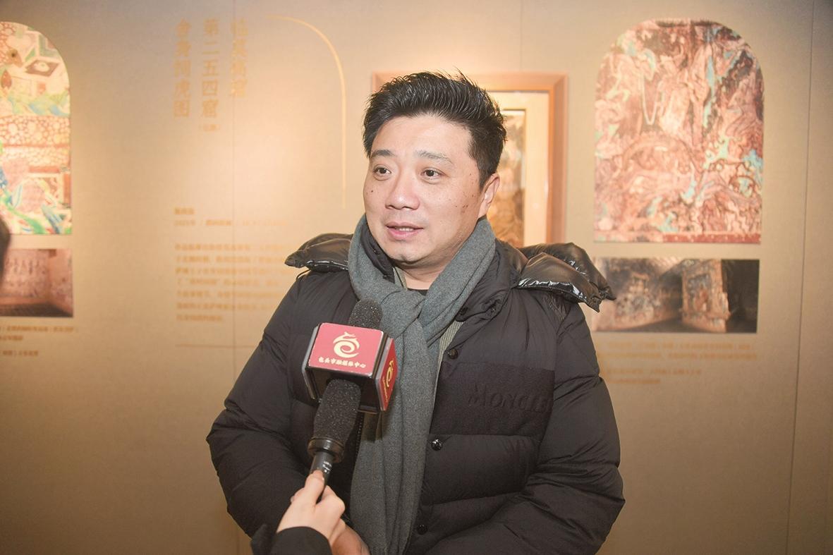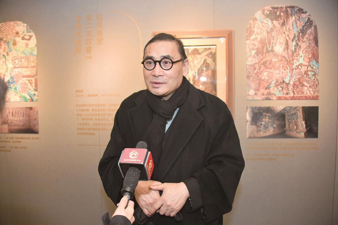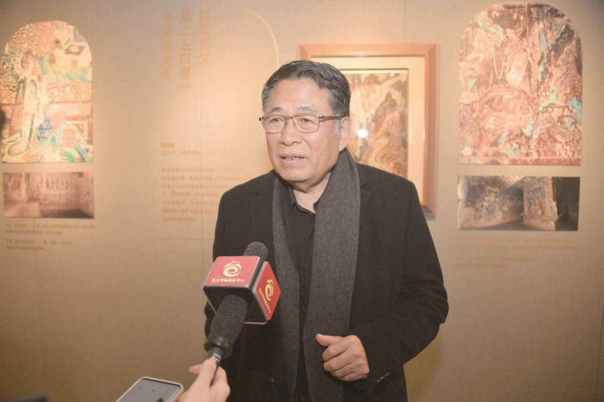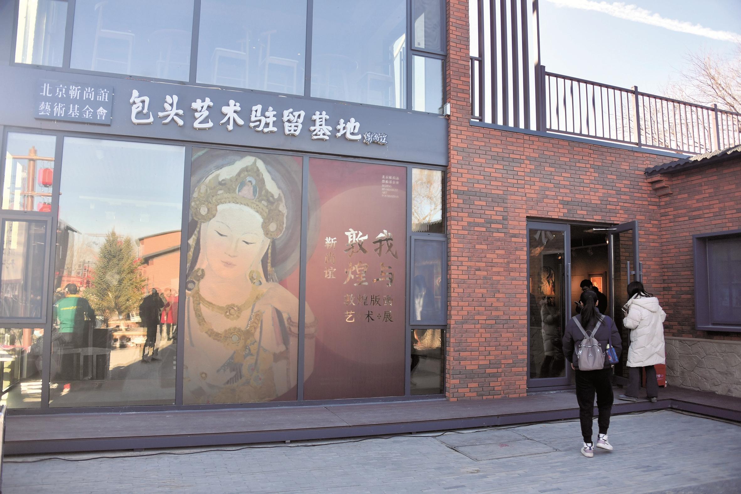 包头艺术驻留基地揭牌当天,展出了靳尚谊的敦煌版画,恰逢黄河观凌周活动,吸引了不少的观众现场观看。当天下午北京外国语大学艺术研究院院长、北京靳尚谊艺术基金会学术委员会委员宁强带来“敦煌壁画呈现的大唐王朝”公益讲座,他直言:“驻留基地落户到‘天下黄河第一村’让我们看到一种希望,这里人们的参与度很高,老人孩子都来了,我在北京也少见这样的状态。”