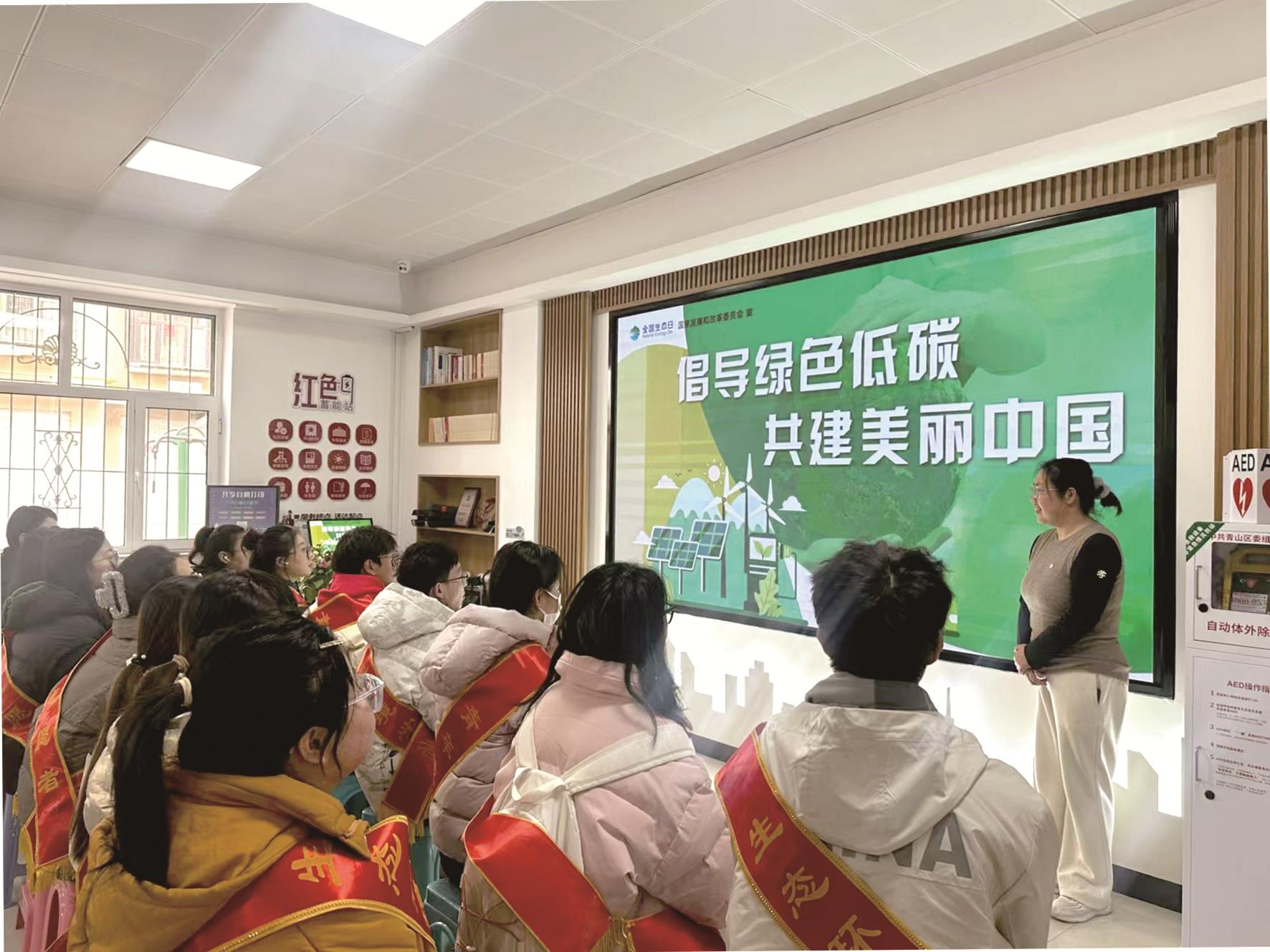 活动当天,大学生志愿者们齐聚社区一楼大厅,通过大屏幕共同学习环保知识和绿色生活理念。他们深刻认识到低碳生活对国家和个人的重要性,并纷纷表示,要积极响应国家号召,以实际行动承担社会责任,成为新一代年轻人低碳生活的典范。