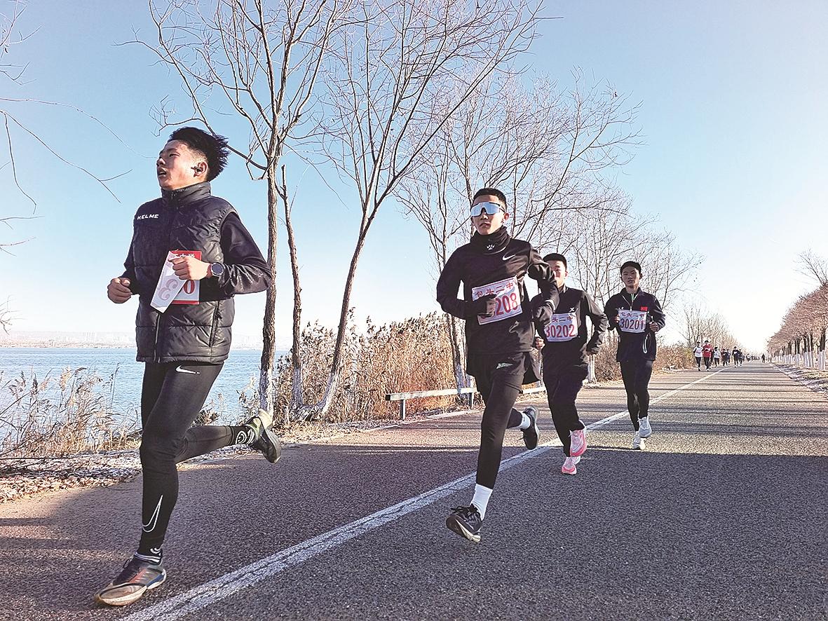 本报讯 挥洒青春热血,磨炼坚强意志,近日,东河区2024年中小学生环南海冬季长跑比赛在南海景区举行,东河区内6所高中、13所初中、20所小学的700余名学生及教练员参与。比赛为期2天,选手们不惧严寒,沿冬季的南海湖畔赛道奋力奔跑,在奔跑中增强体魄,突破自我。