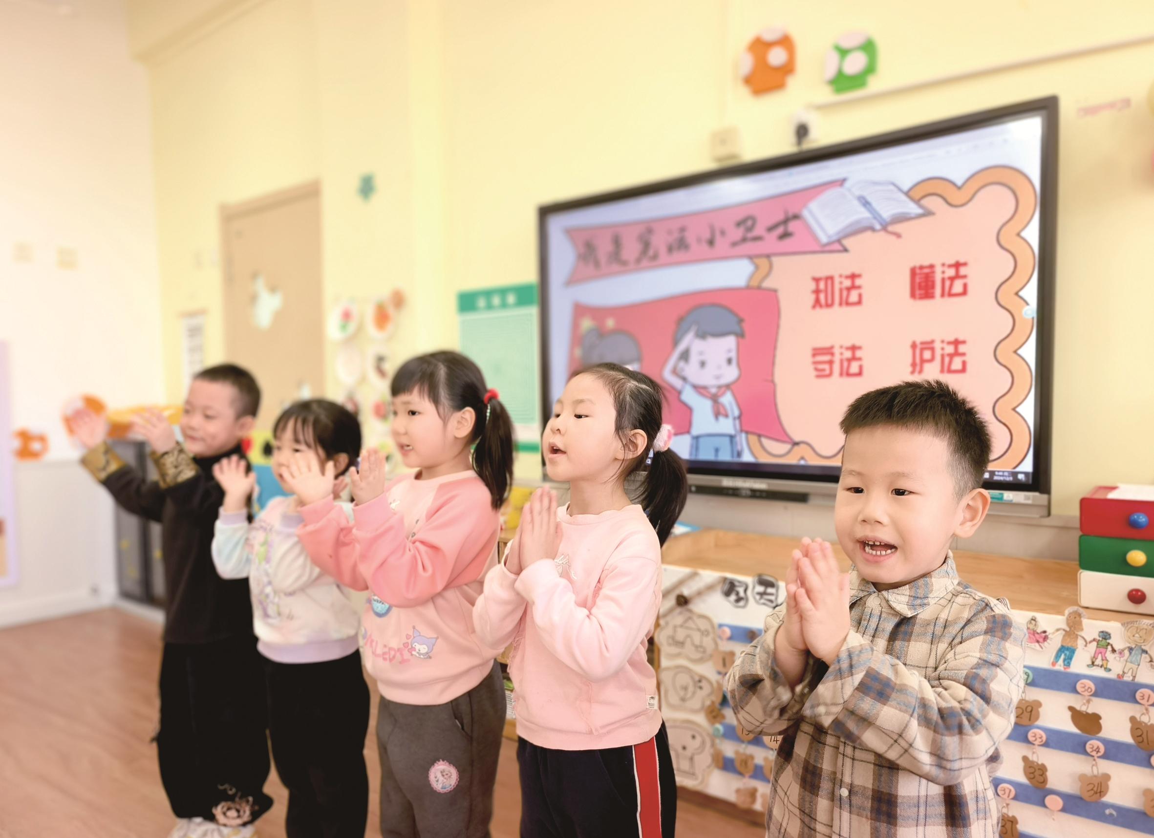 图为小朋友在唱宪法儿歌。
