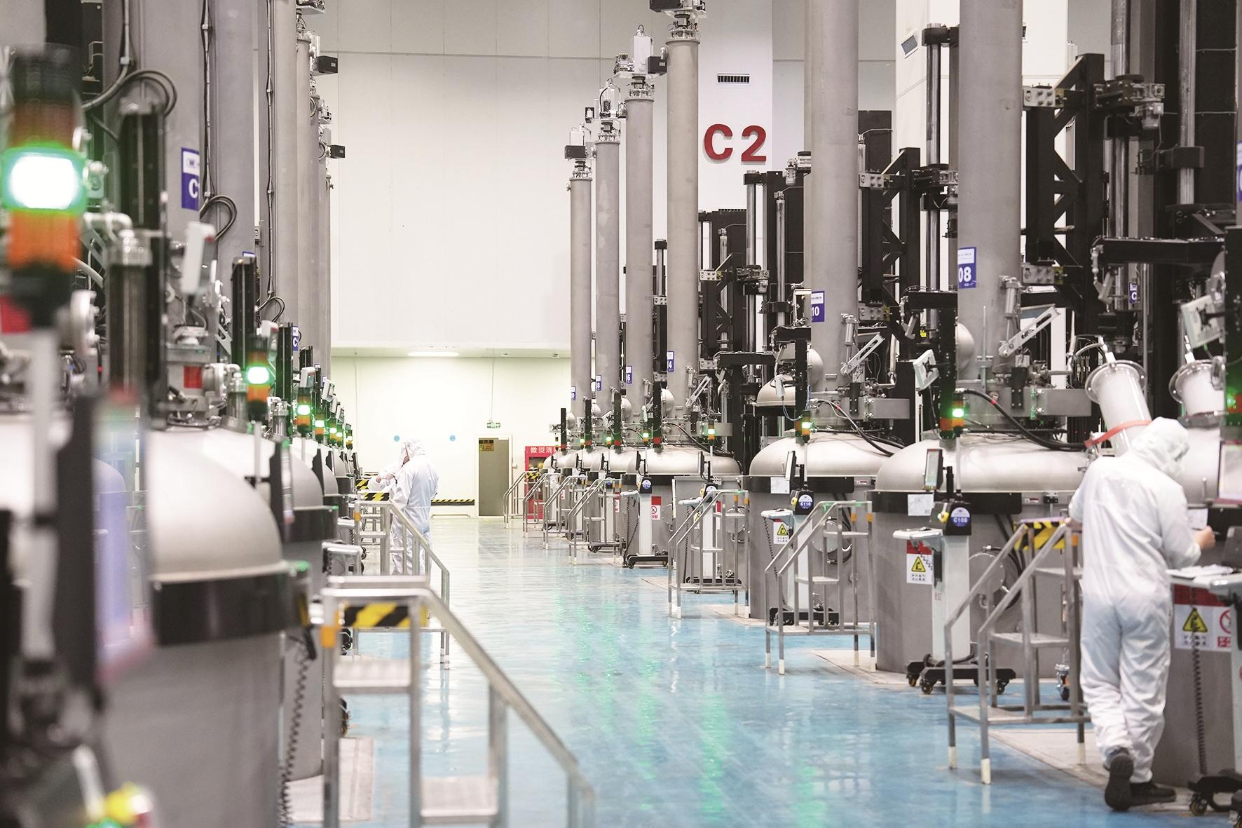 置身130米高空俯瞰,一望无际的蓝色彩钢板折射微光,仿佛一片静谧的“蓝色海洋”悬在半空,格外开阔壮观,这里便是占地2000余亩的双良光伏新能源产业园。