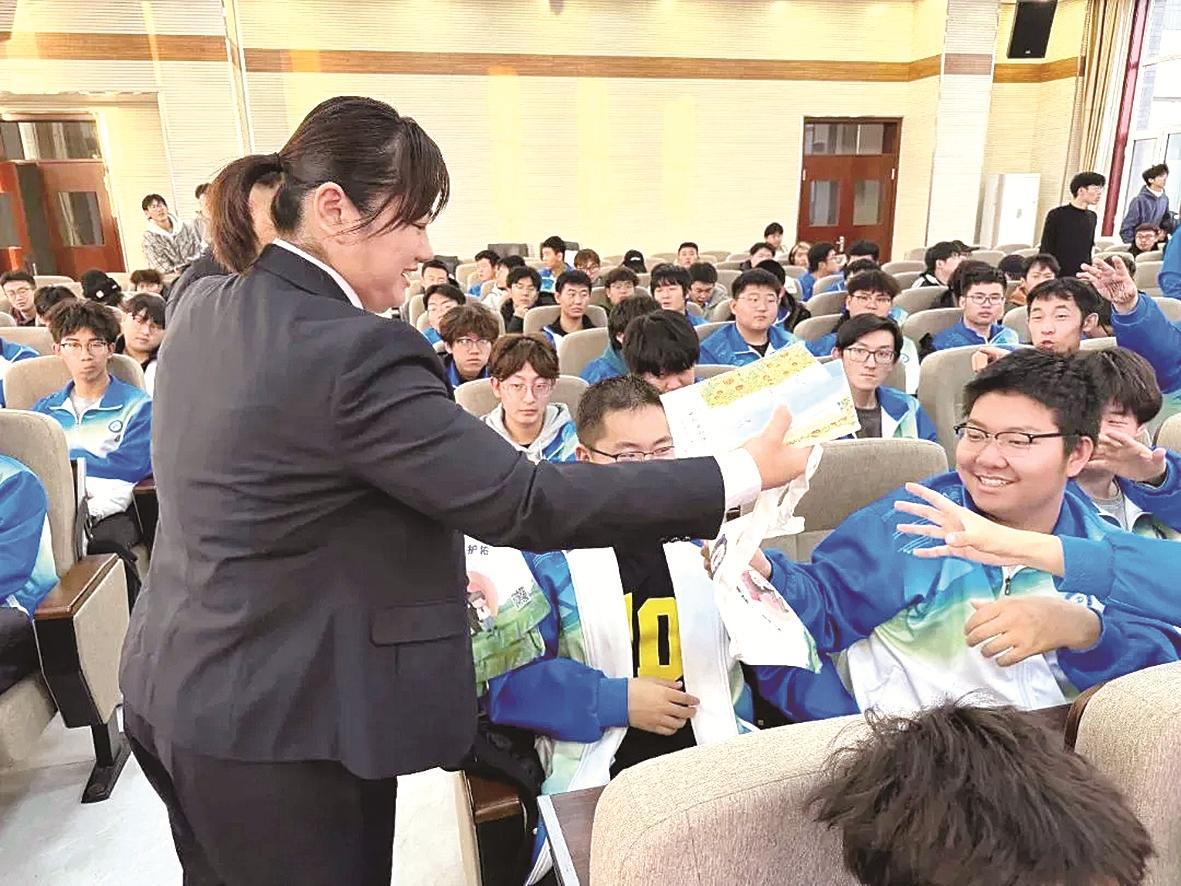 在互动环节,学生们踊跃提问,围绕宪法在校园生活中的具体应用、如何避免陷入网络犯罪陷阱等话题与检察人员展开了热烈讨论。检察人员一一耐心解答,并现场发放了法治宣传手册,鼓励同学们将所学法律知识传递给家人和朋友,共同营造尊法、学法、守法、用法的良好氛围。