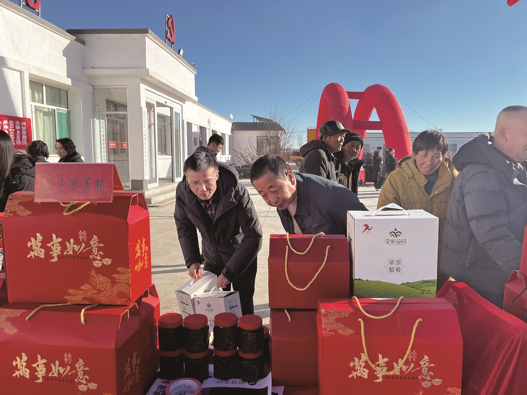 走进活动现场,首先映入眼帘的就是热闹的农副产品展销区,摊位上摆满了周边农户带来的各式特色农产品,黄芪、石磨面粉、胡油、新鲜的猪肉,大家穿梭其间,挑选着自己心仪的农副产品。