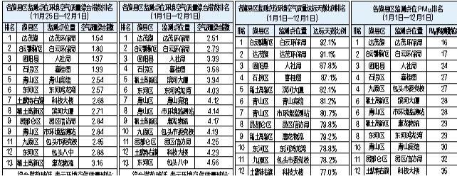 包头市各旗县区监测点位环境空气质量排名