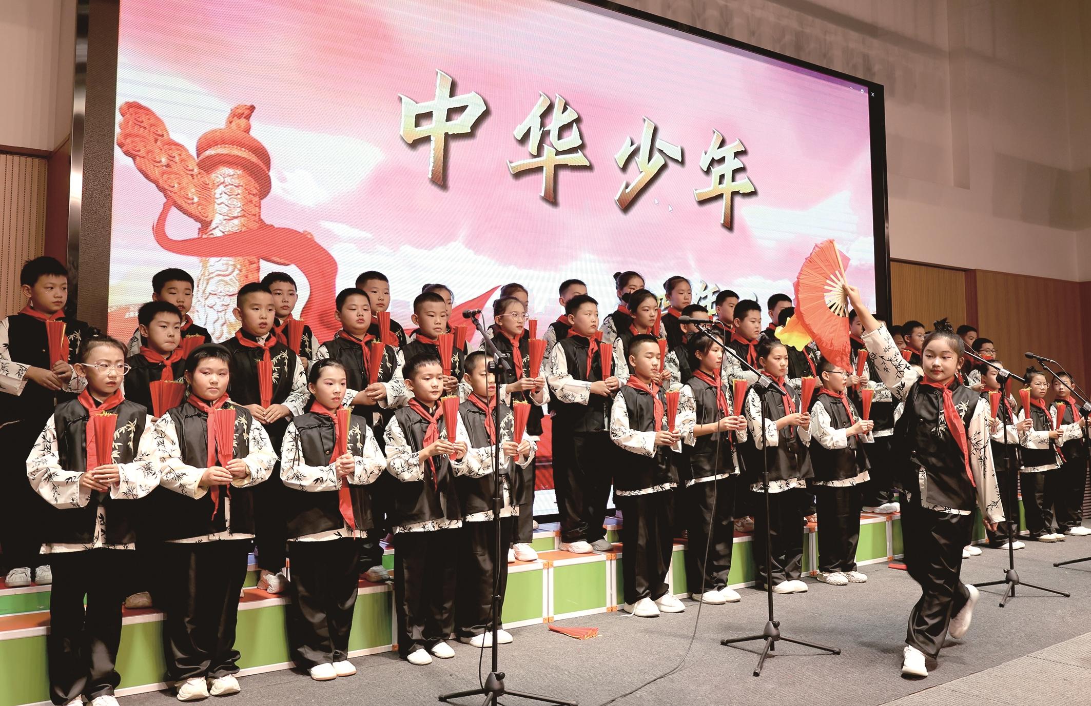 图为孩子们用嘹亮的歌声唱响经典爱国歌曲。