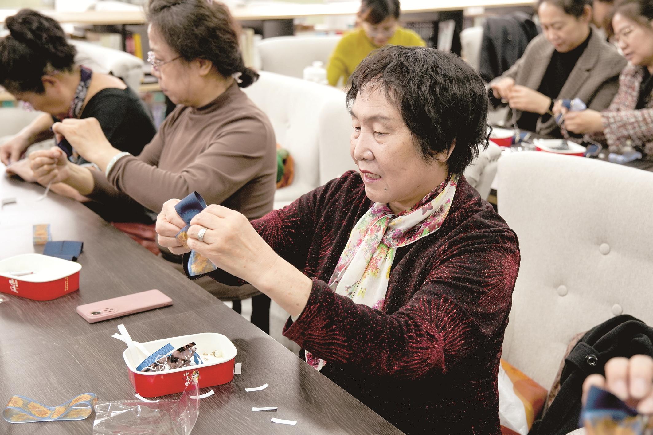 “五老”人员认真学习制作发饰。