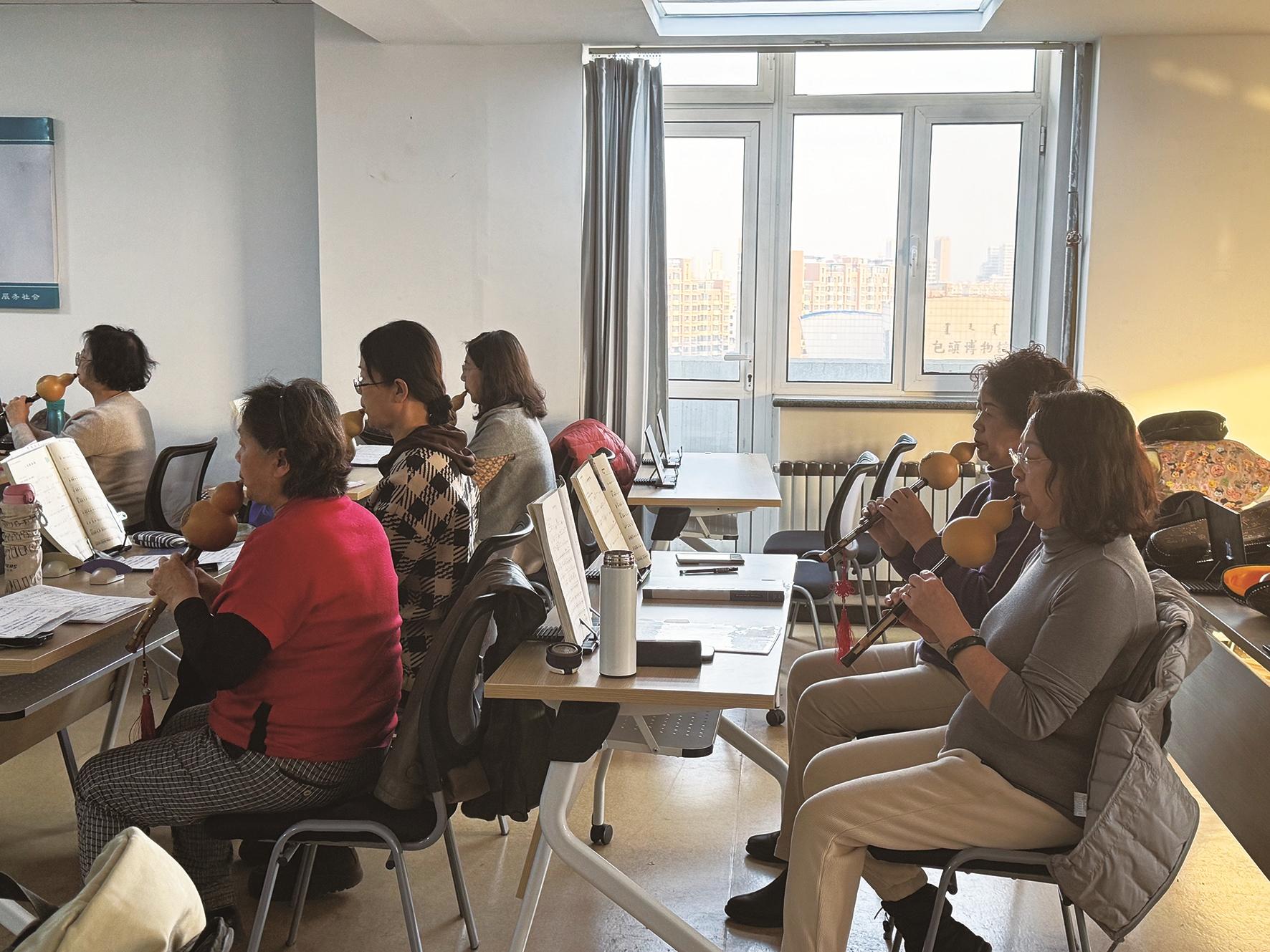 周二下午3时整,刚踏入包头市老年大学的教室走廊,便传来了不同专业教师授课的声音。今年秋季学期,包头市老年大学为老年人们安排了声乐、茶艺、烘焙、文学诗词、剪纸、彩铅画、速写、健康养生舞、花卉养护、智能手机应用(安卓版)等课程,时间从周一延续到周日,老年人可以根据自己的兴趣爱好、空闲时间自由选择。