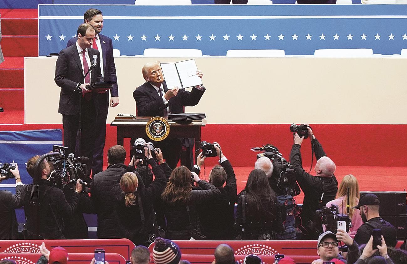 新华社华盛顿1月20日电(记者刘亚南 熊茂伶)特朗普20日午间宣誓再次就任美国总统,当天共签署超过40个总统行政令,推动落实其在移民、贸易、能源与气候变化、政府能效、“国会山骚乱”、TiKTok等方面的政策主张。