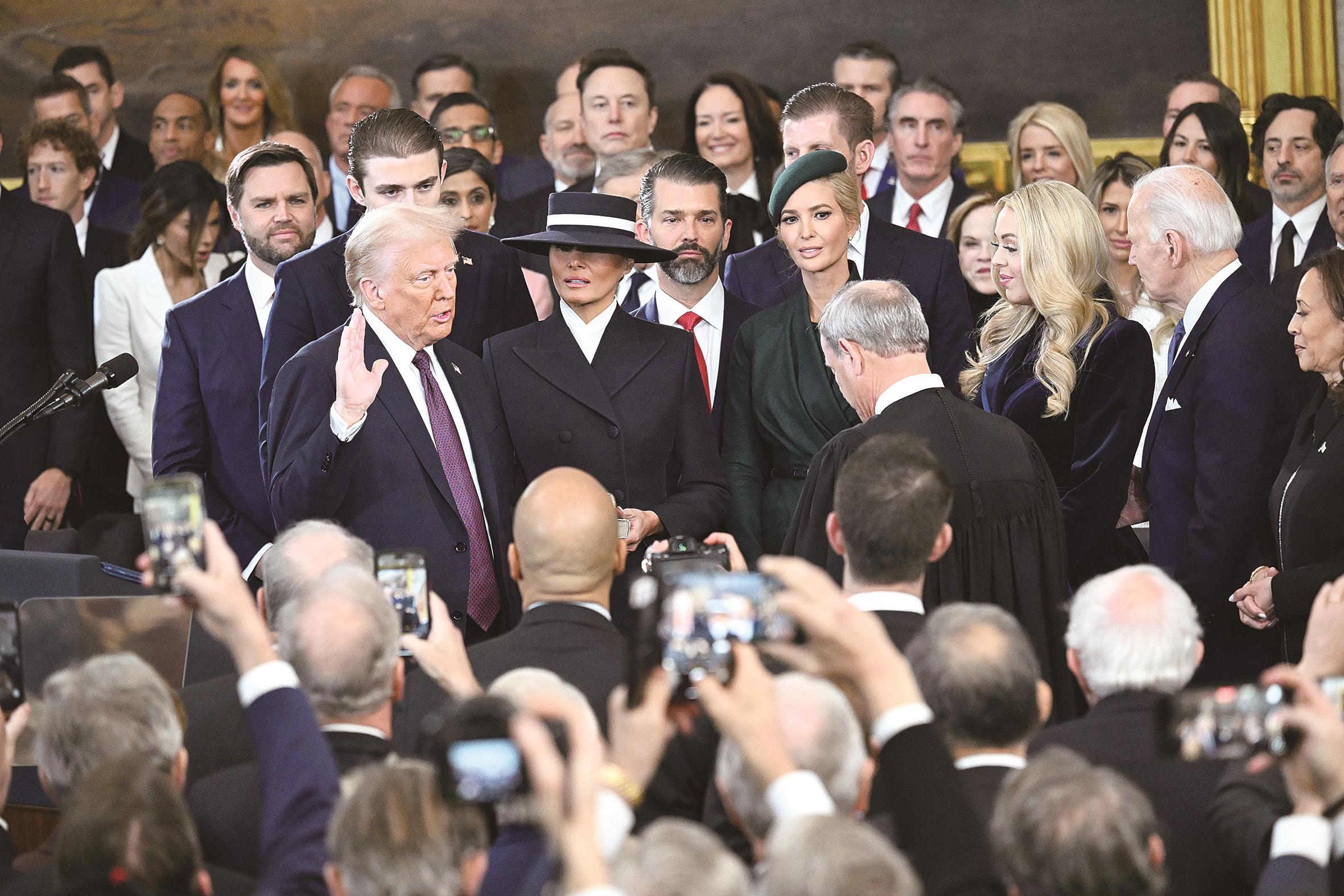 1月20日,在美国首都华盛顿国会大厦圆形大厅,特朗普在美国第47任总统就职典礼上宣誓。新华社/美联