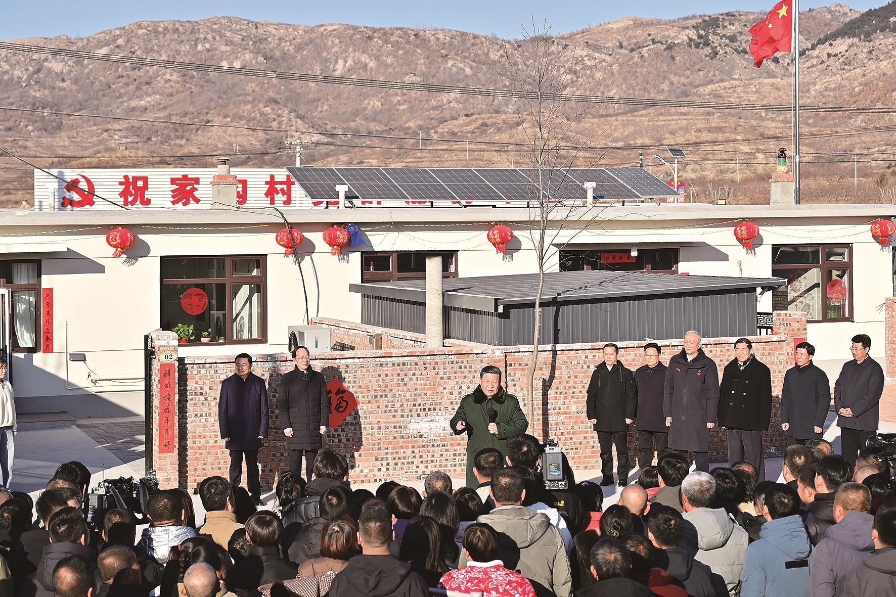 1月22日至24日,中共中央总书记、国家主席、中央军委主席习近平冒着严寒来到辽宁,看望慰问基层干部群众。这是22日下午,习近平在葫芦岛市绥中县明水满族乡祝家沟村考察时,同村民们亲切交流,向大家致以诚挚慰问和新春祝福。 新华社记者 翟健岚 摄