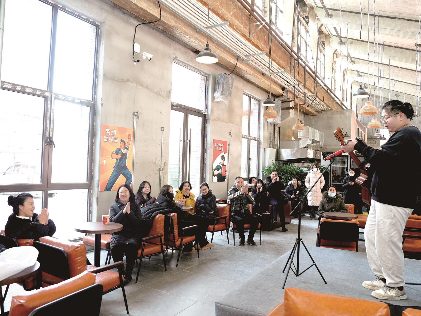 年前刚投入运营的“包棉1958”同样游客众多,大家听着民谣音乐,喝着奶茶、咖啡,聊天休闲,是年的惬意。