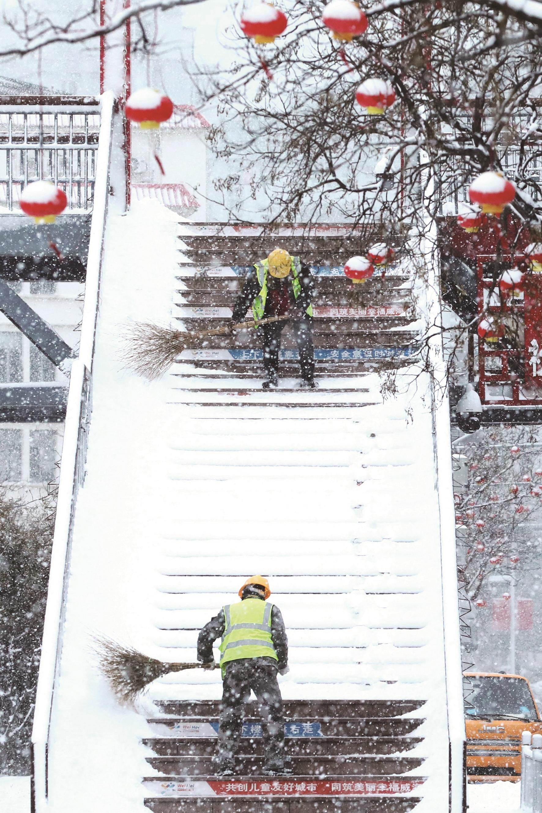 中国铁路武汉局集团有限公司工作人员及时清扫客运站站台和进出通道的积雪,铺设防滑垫、设置安全警示标志;甘肃天水站、天水南站针对因降雪导致部分列车晚点的情况,组织专人引导旅客办理车票退改签;呼和浩特、鄂尔多斯、包头等火车站实时监测候车室温度,并24小时提供热水……