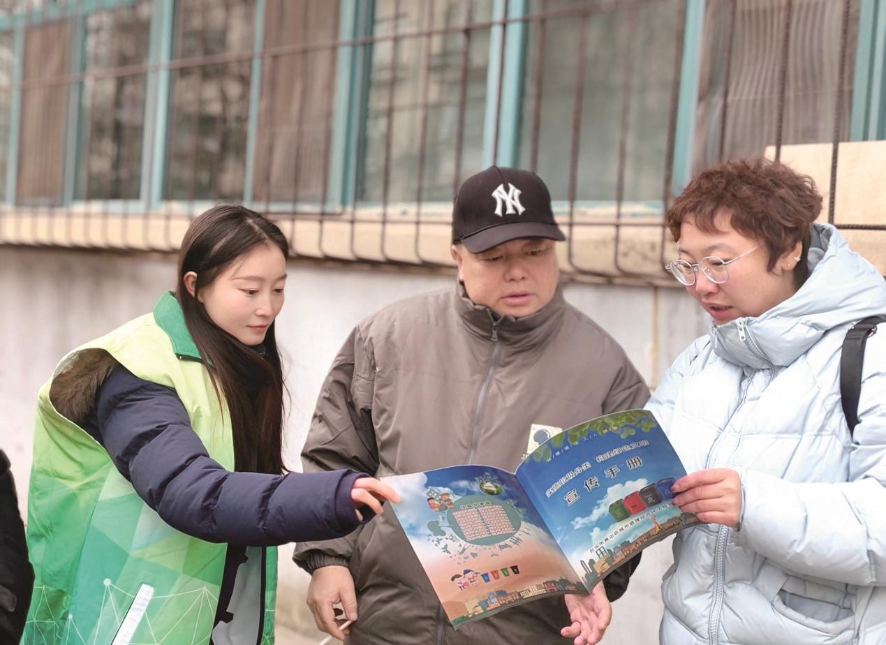 志愿者向居民讲解垃圾分类知识。